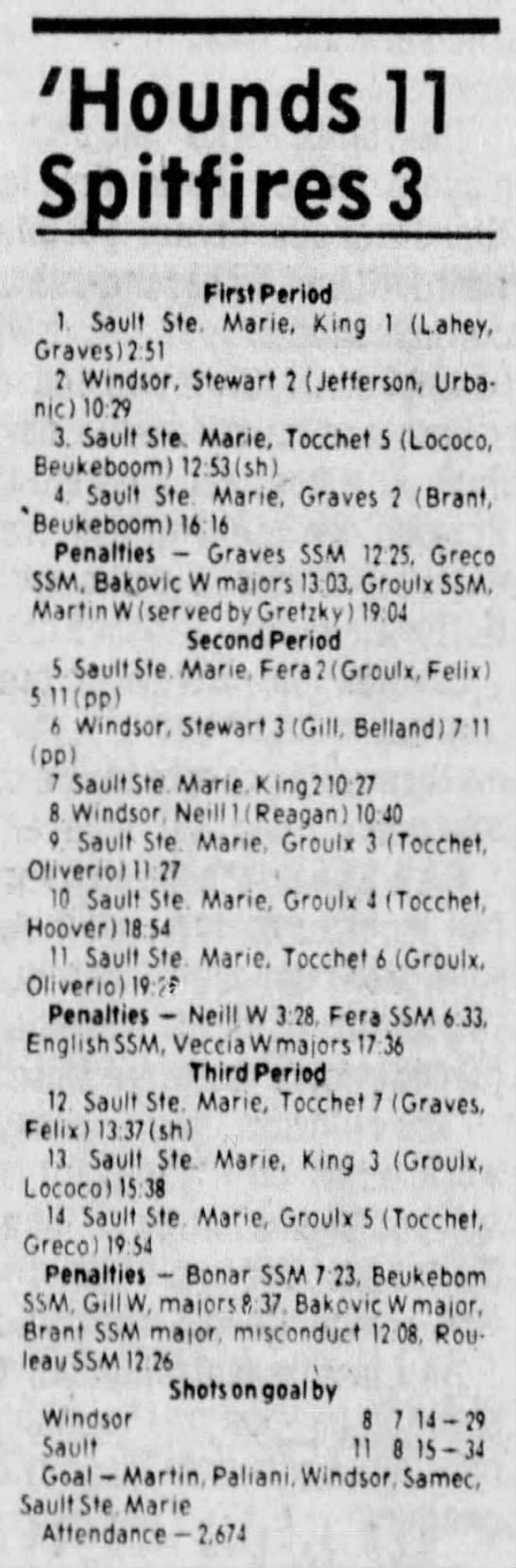 December 1 1983- Soo @ Windsor