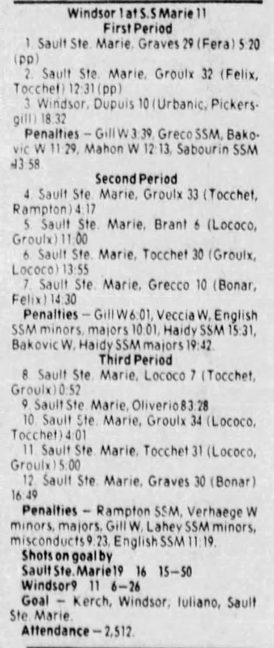 November 25 1983- Windsor @ Soo