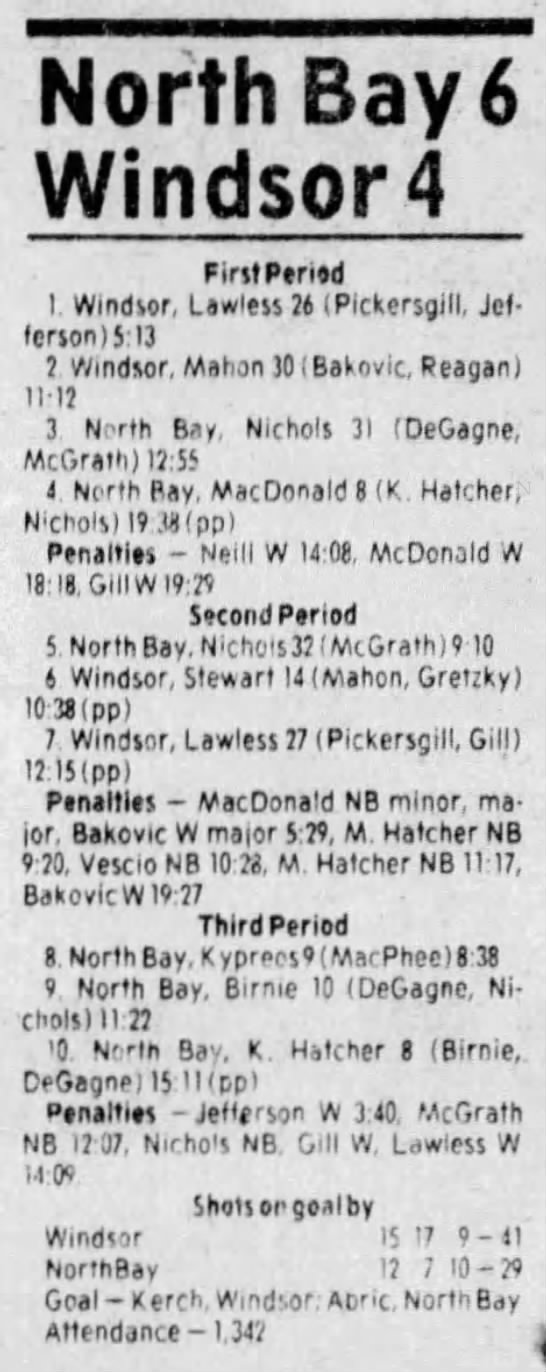 March 1 1984- Windsor @ North Bay