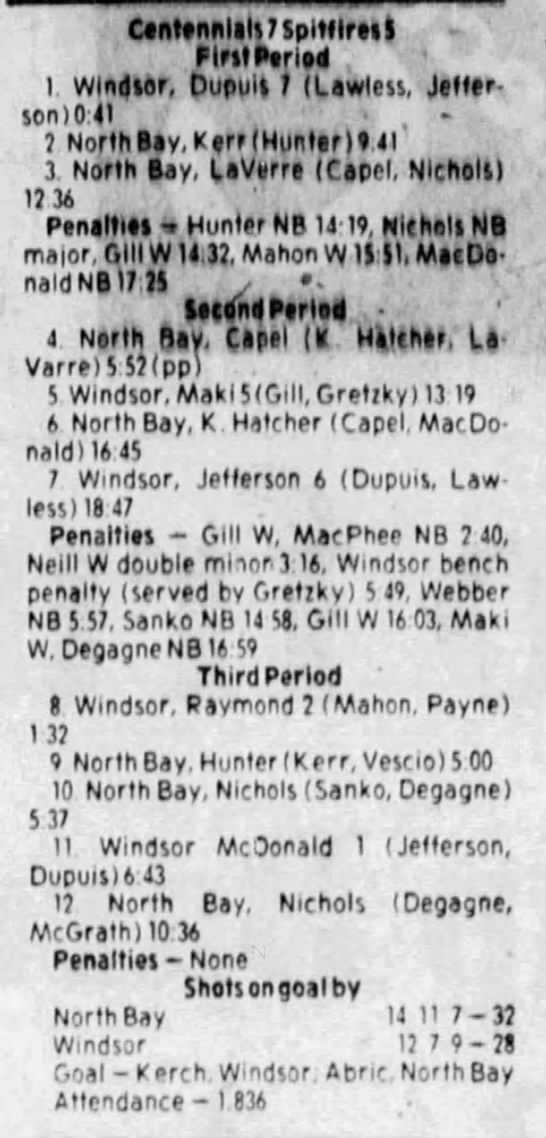 November 27 1983- Windsor @ North Bay
