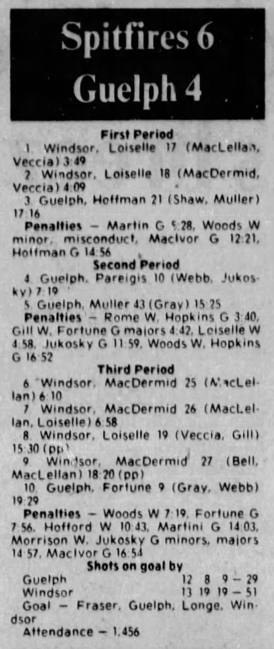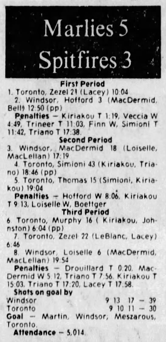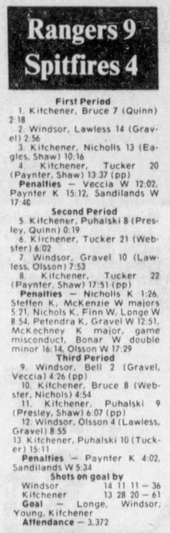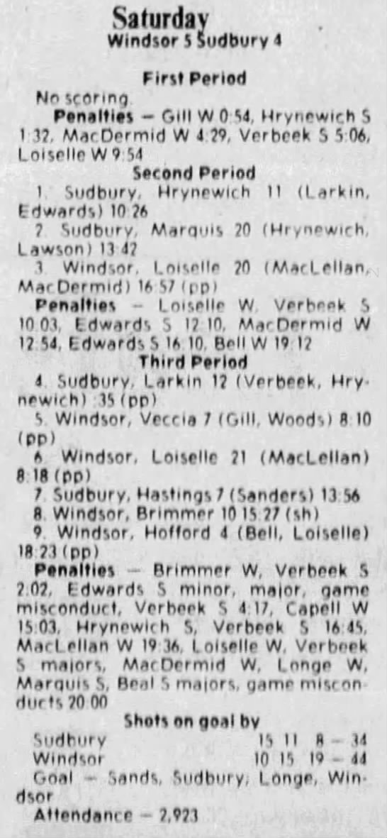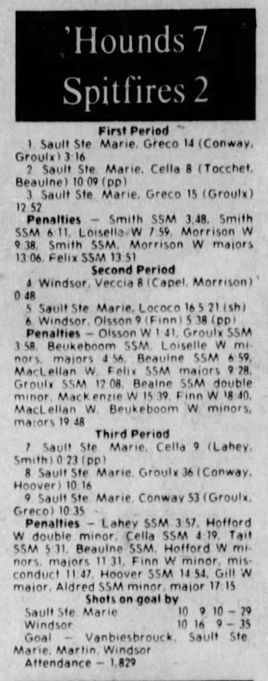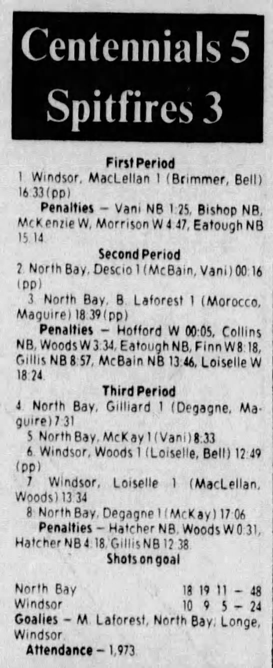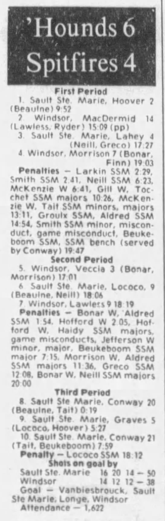 Here are the boxscores from the 1982-83 Windsor Spitfires season. Every game from that season is here (73/73 boxscores). If you have any games that are missing from any other team or season, please send them my way.