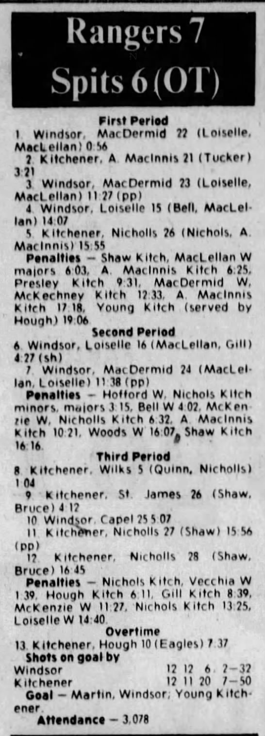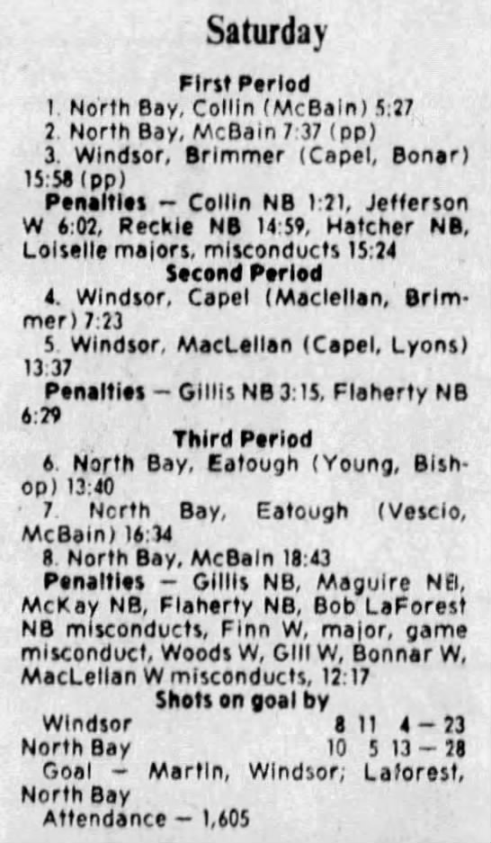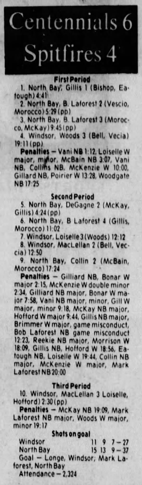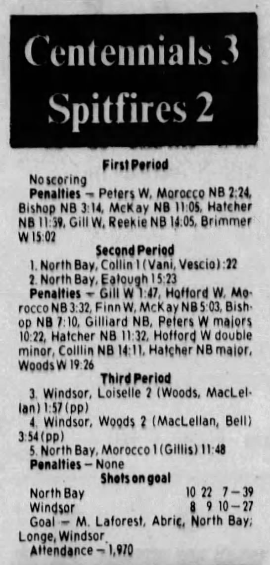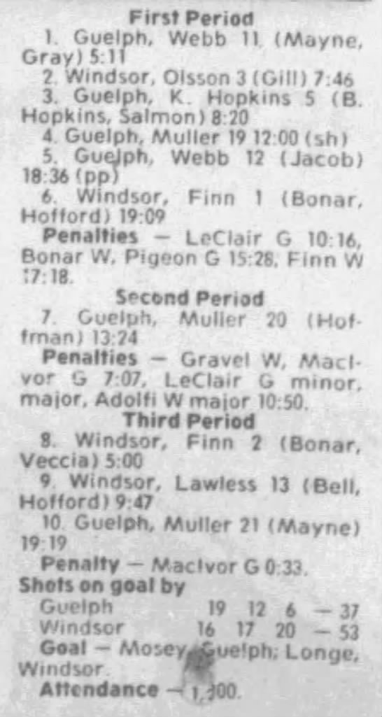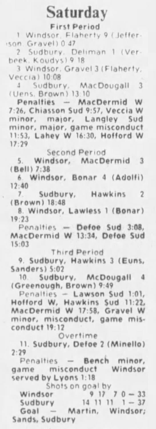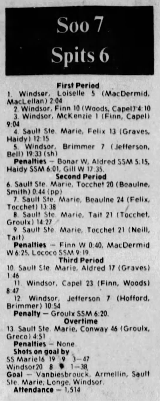 Here are the boxscores from the 1982-83 Windsor Spitfires season. Every game from that season is here (73/73 boxscores). If you have any games that are missing from any other team or season, please send them my way.