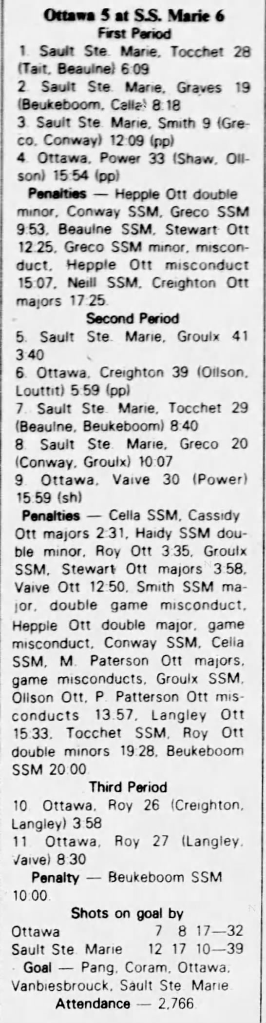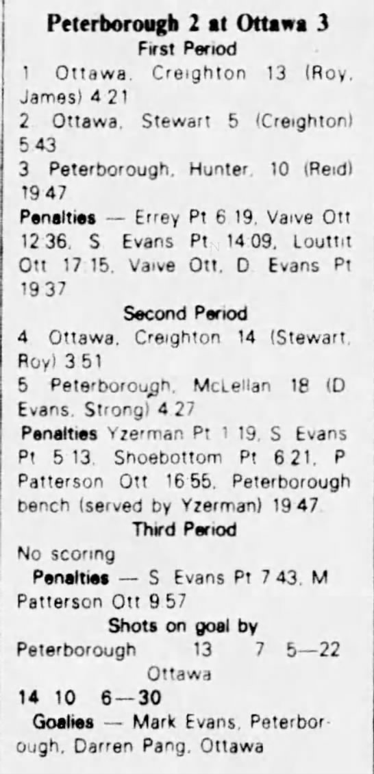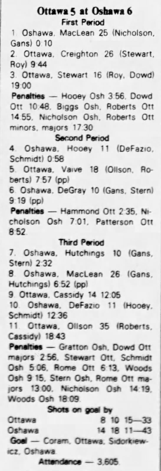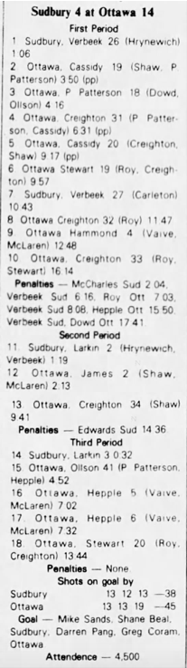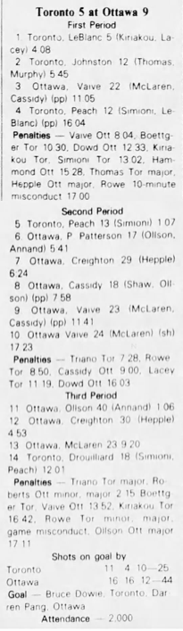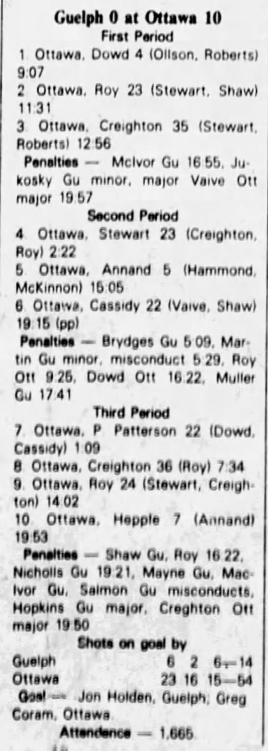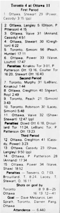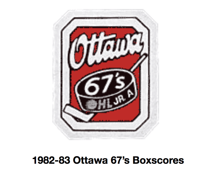 Here are the boxscores from the 1982-83 Ottawa 67’s season. All 79 boxscores from that season are here (79/79 boxscores). If you have any of the games that are missing, please send them my way.