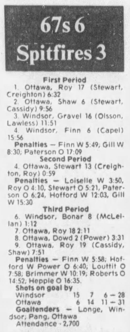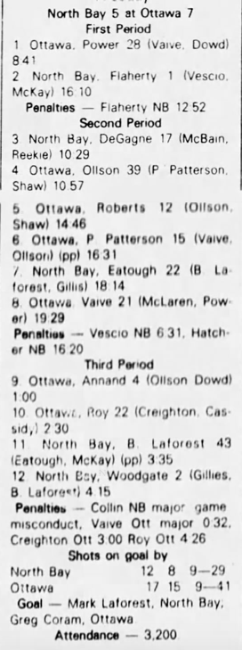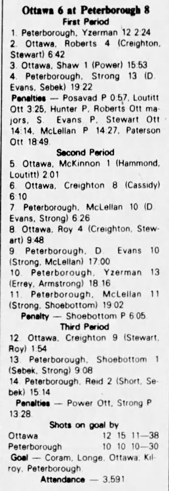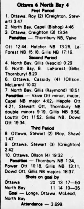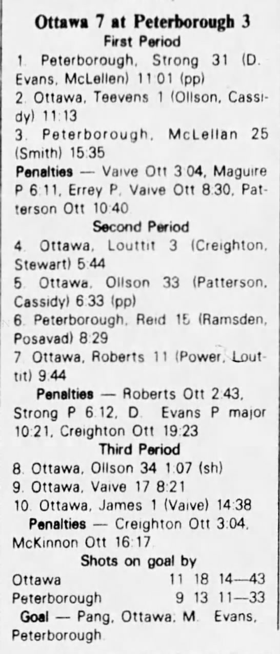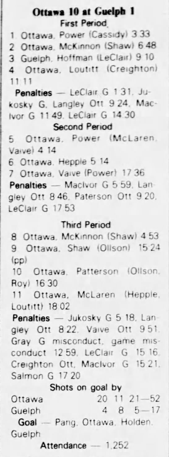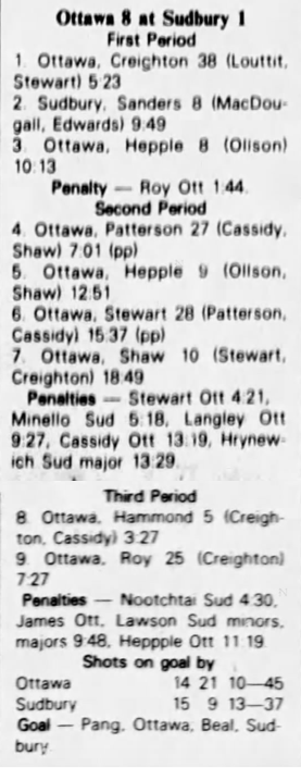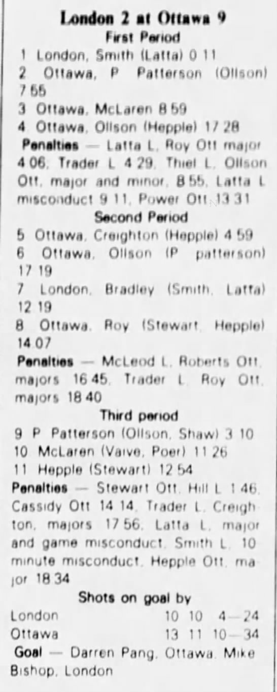 Here are the boxscores from the 1982-83 Ottawa 67’s season. All 79 boxscores from that season are here (79/79 boxscores). If you have any of the games that are missing, please send them my way.