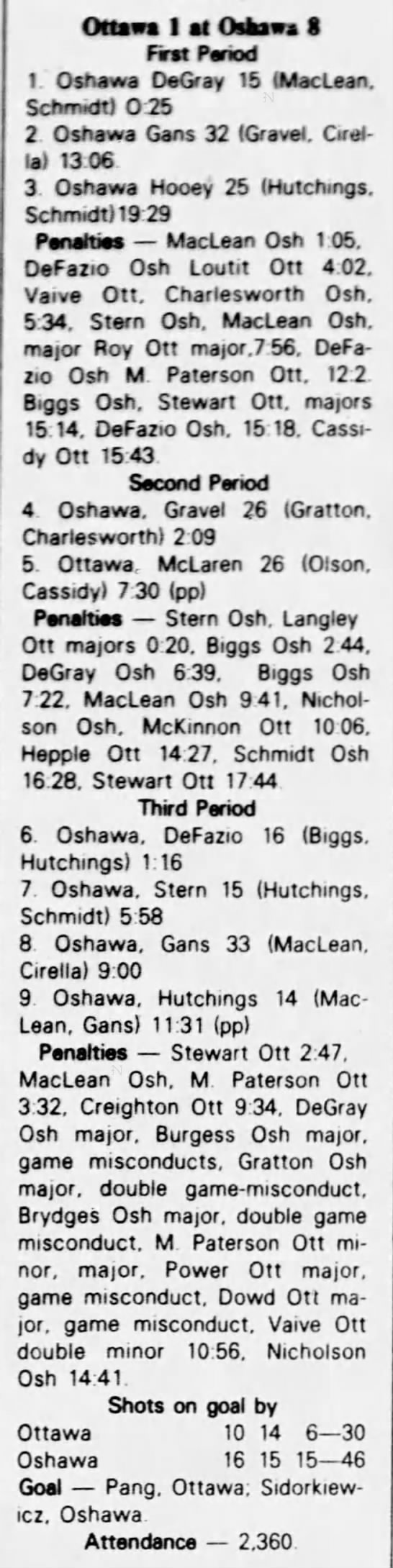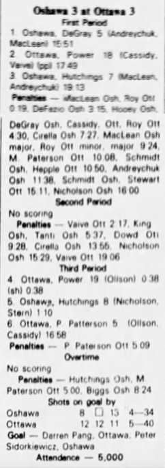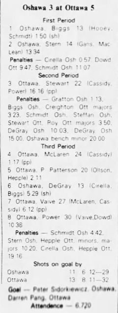 Game 1- April 8 1983- Oshawa @ Ottawa