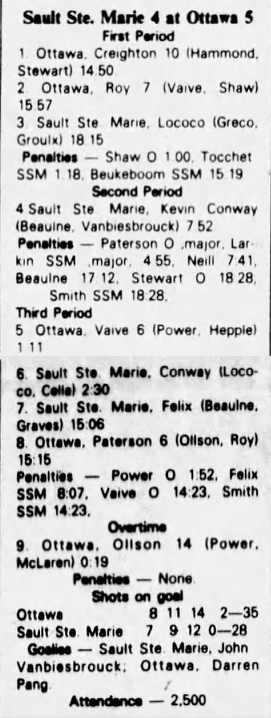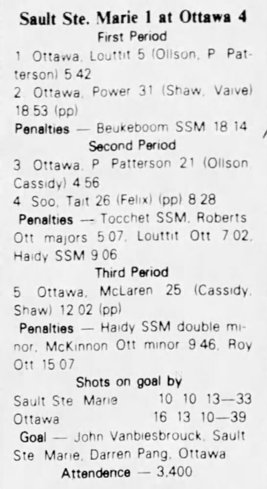 Game 2- March 27 1983- Ottawa @ Cornwall