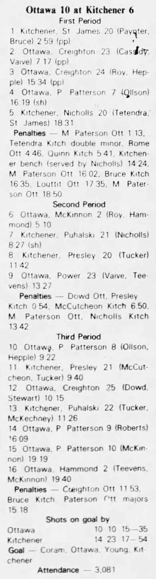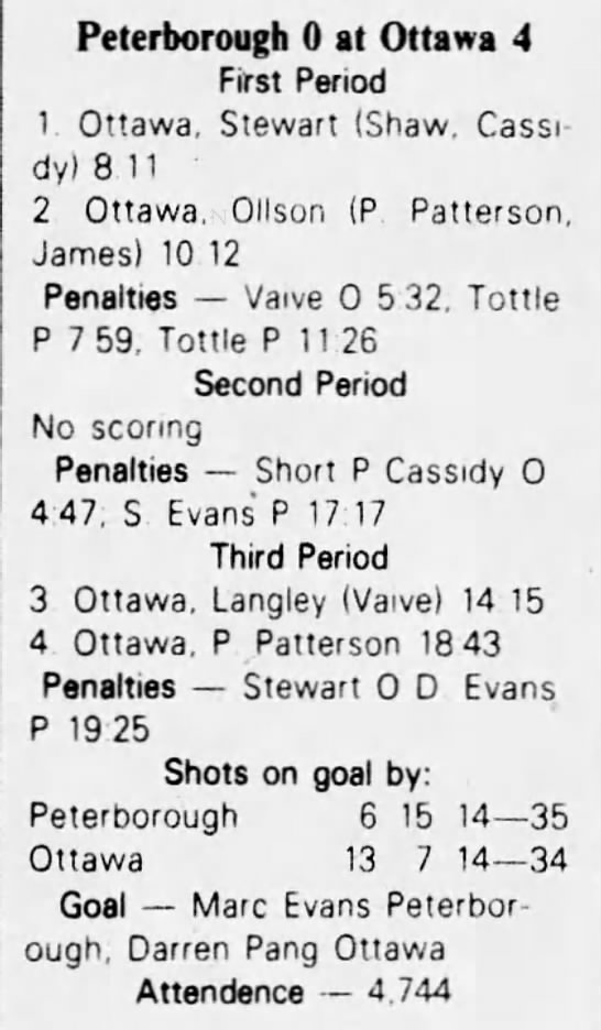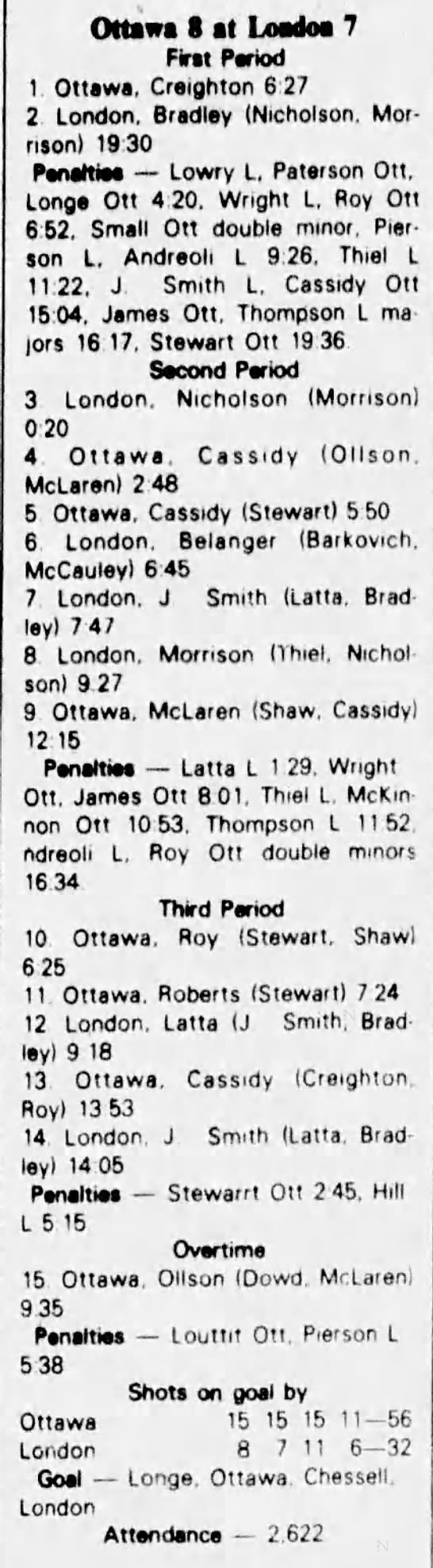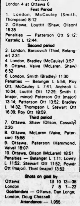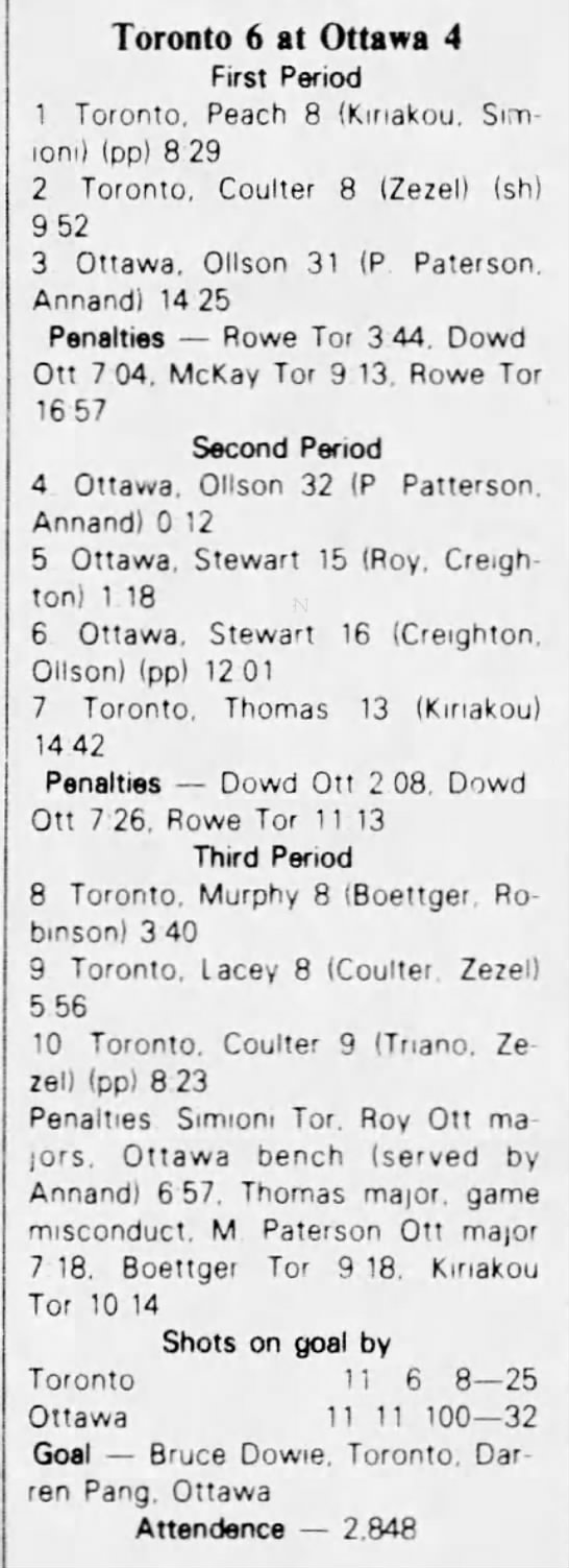 Game 2- April 10 1983- Ottawa @ Oshawa