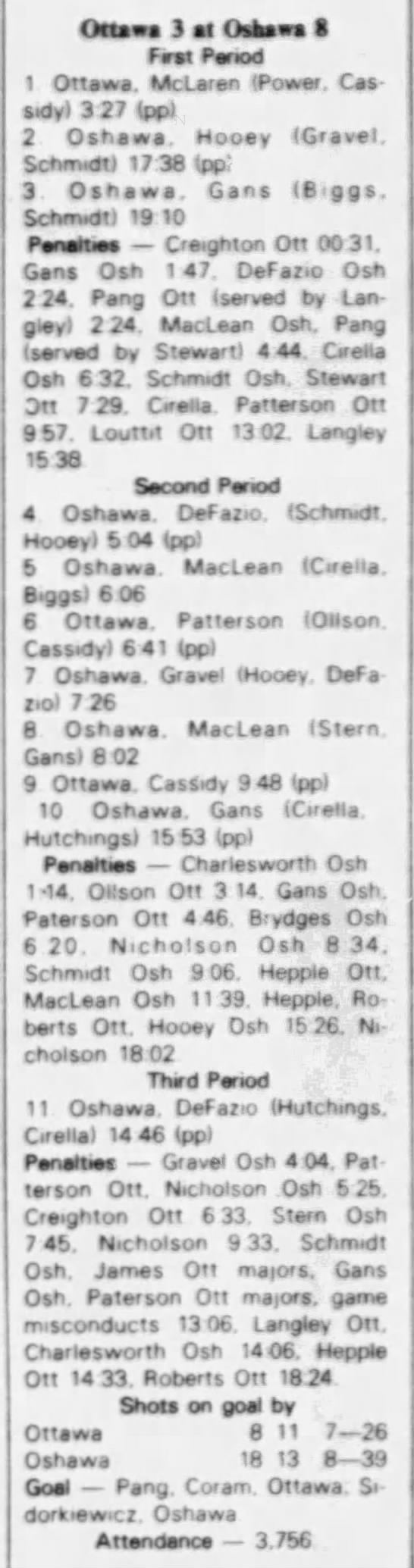 Game 3- April 12 1983- Oshawa @ Ottawa