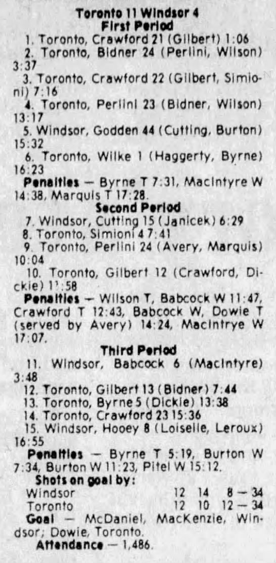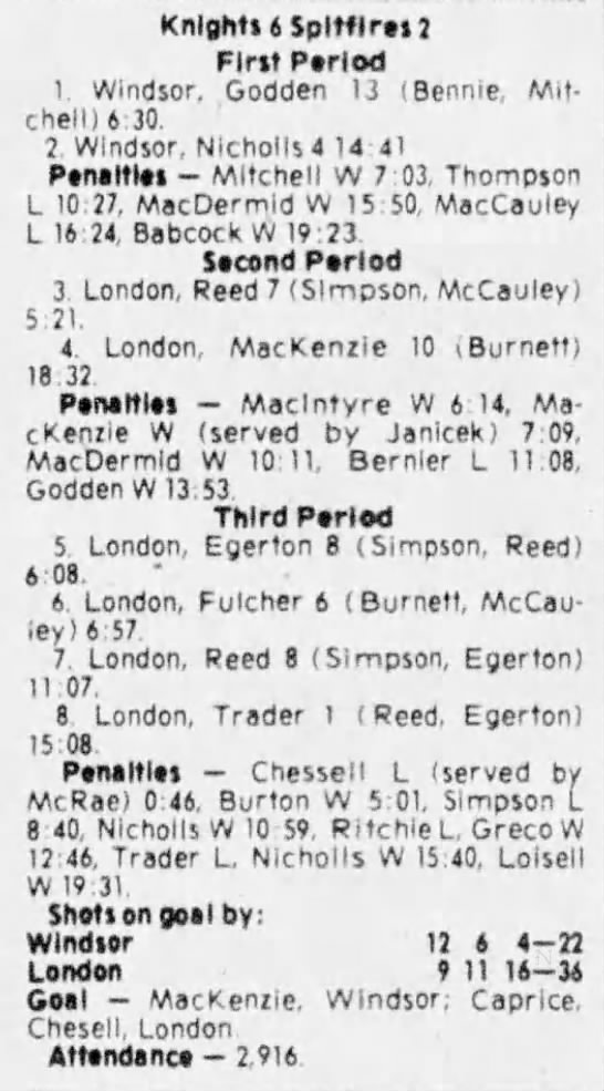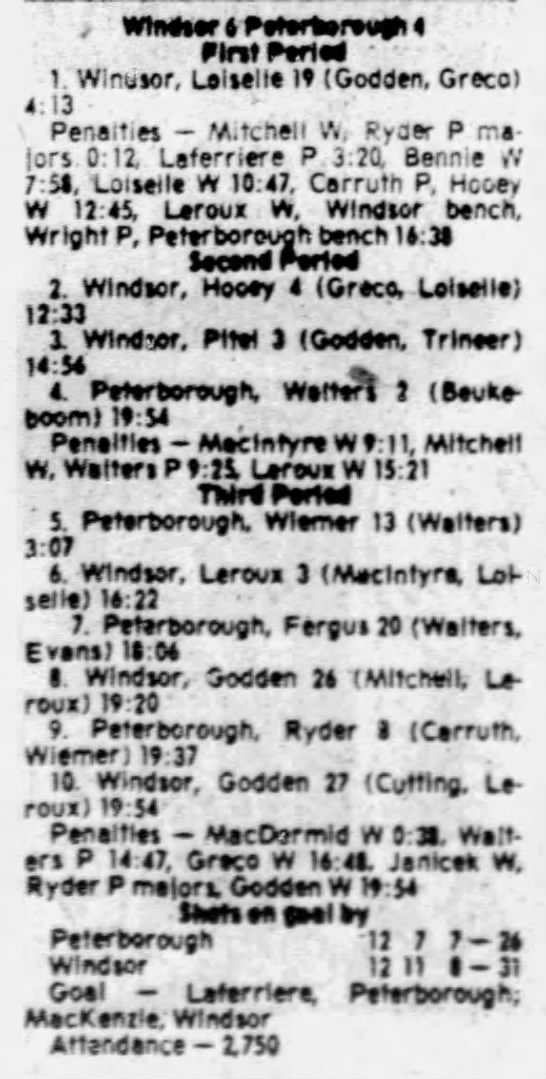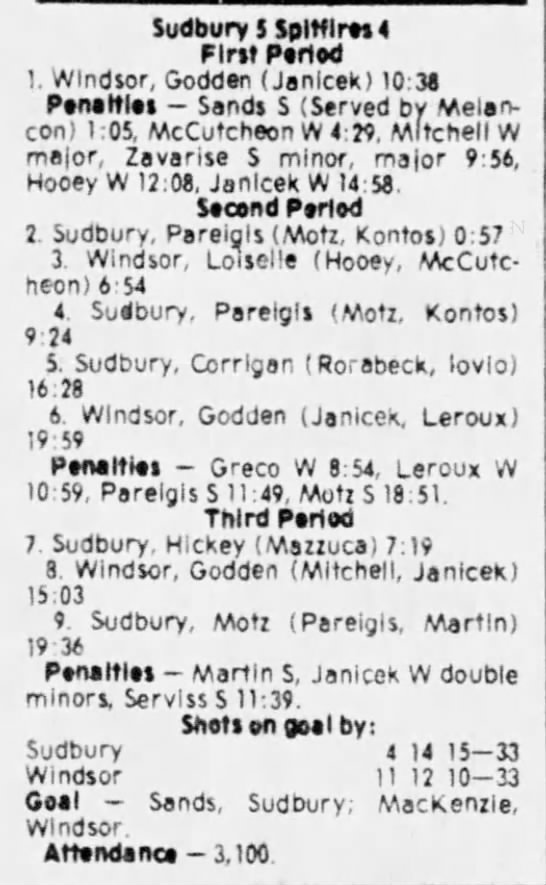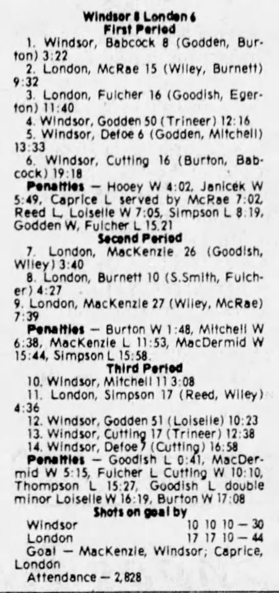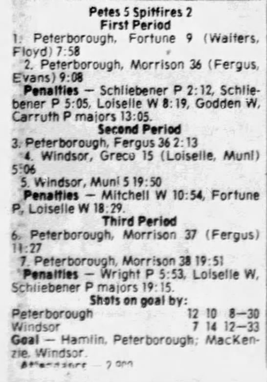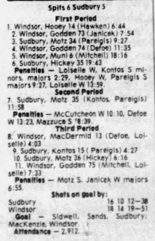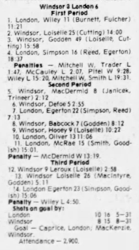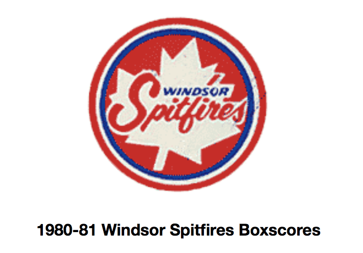 Here are the boxscores from the 1980-81 Windsor Spitfires season. There is one that are missing, but the rest of them are here (78/79 boxscores). If you have any of the games that are missing, please send them my way.