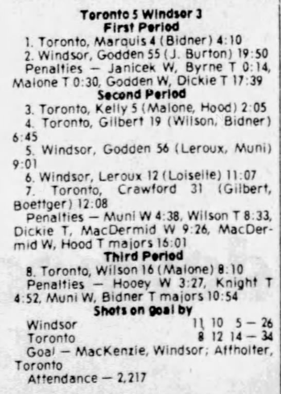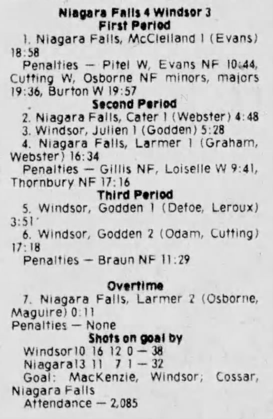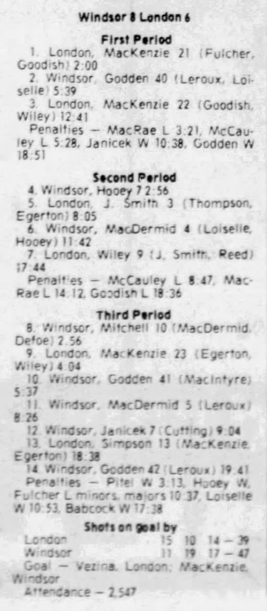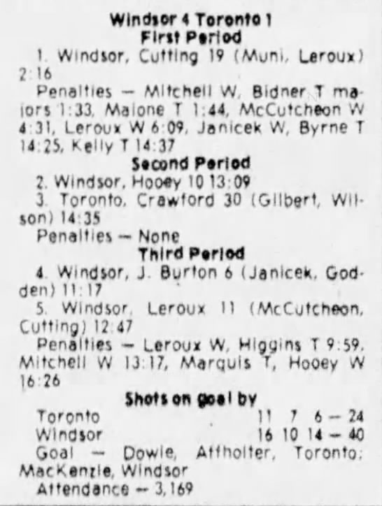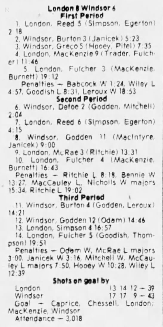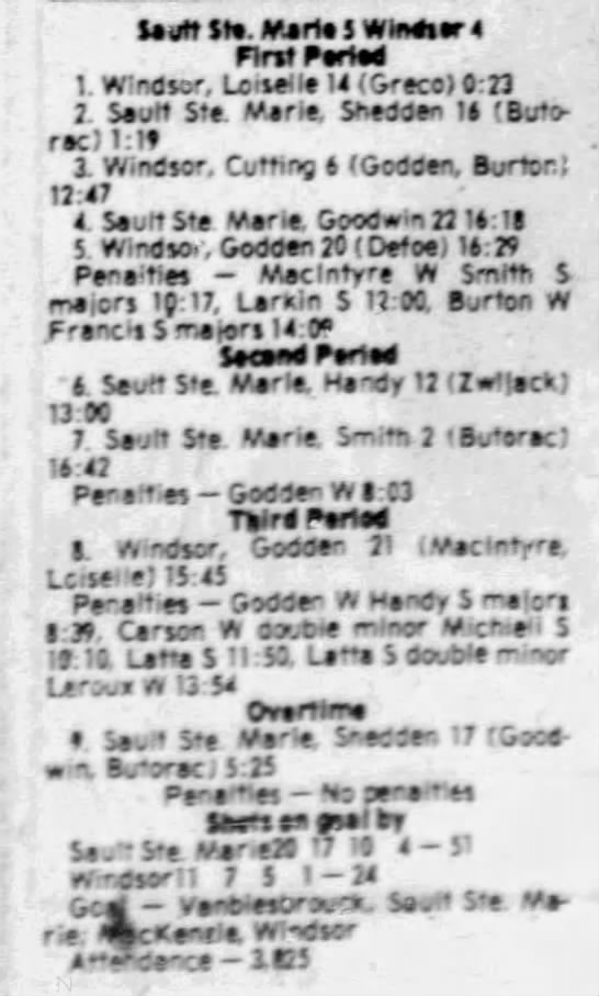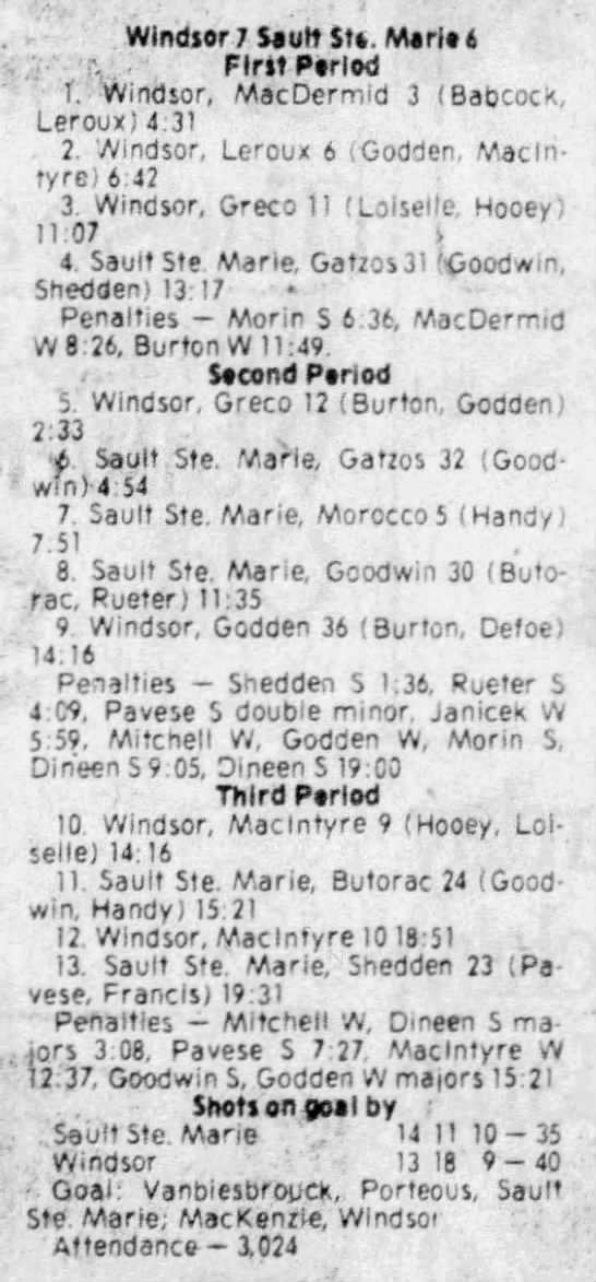 February 7 1981- Windsor @ Soo (6-5 Windsor)