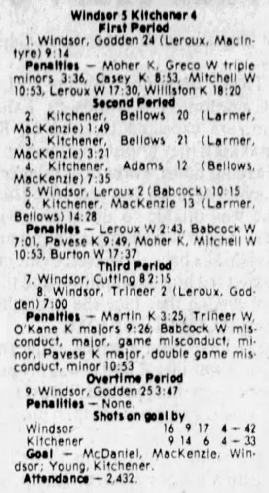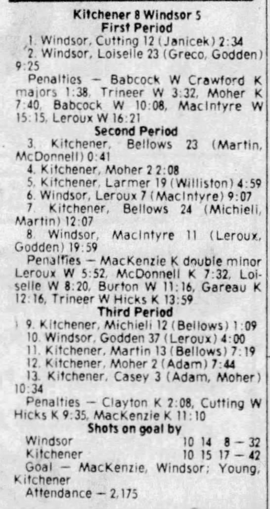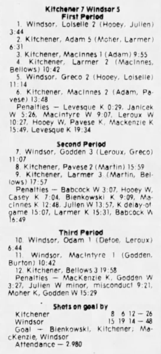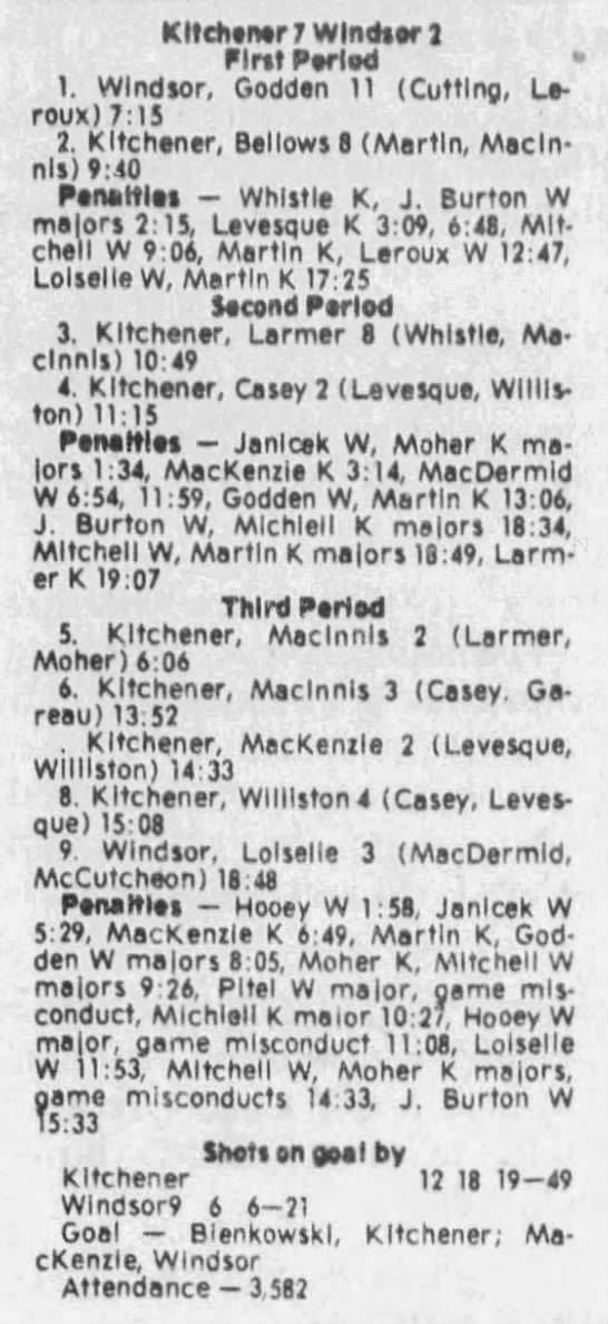 December 12 1980- Windsor @ Kitchener