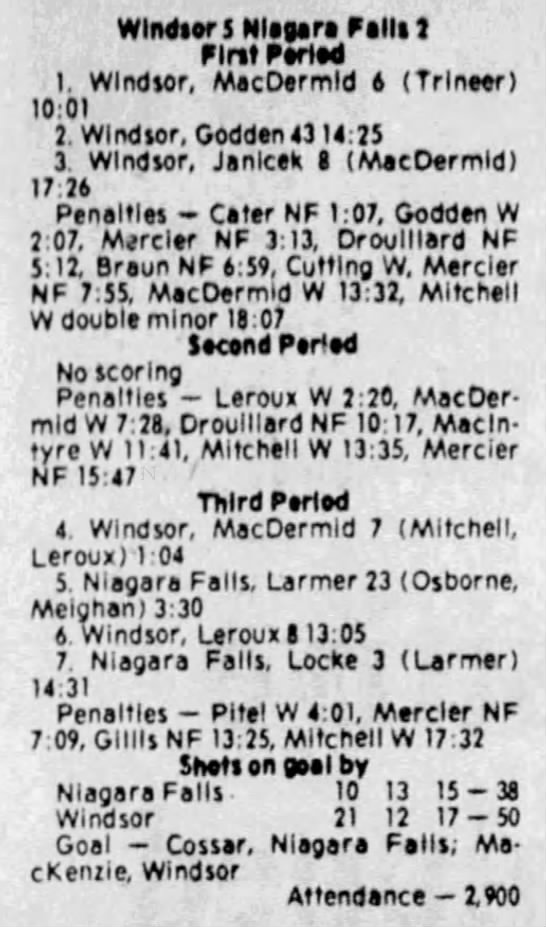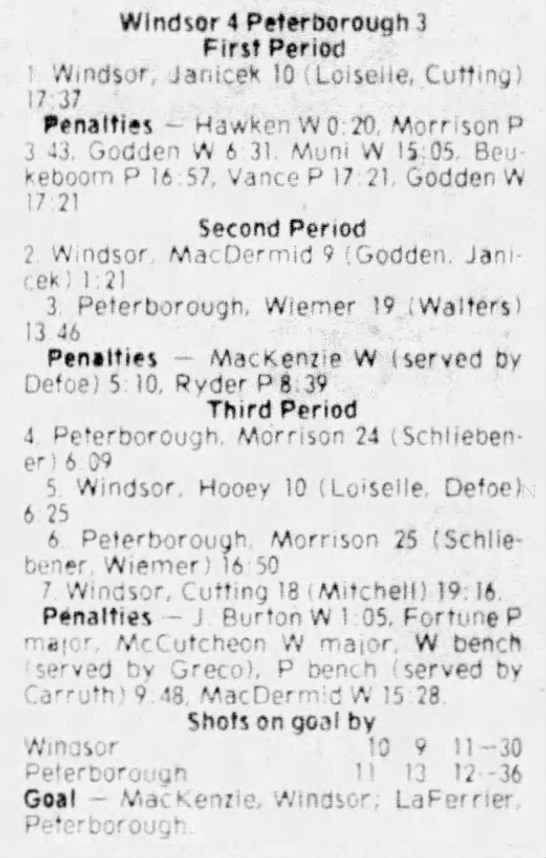 December 7 1980- Windsor @ Soo