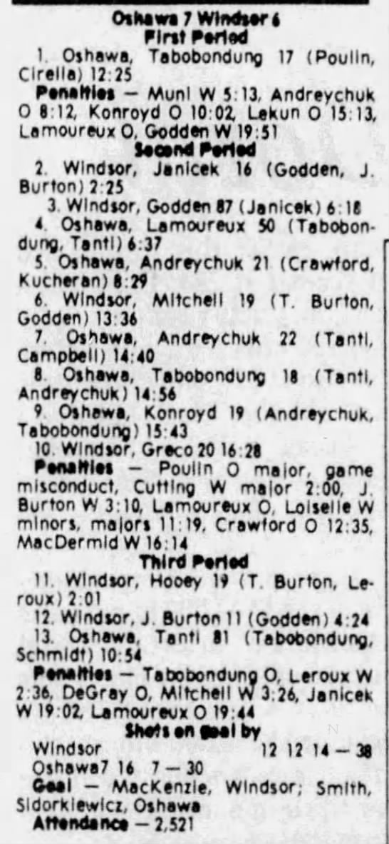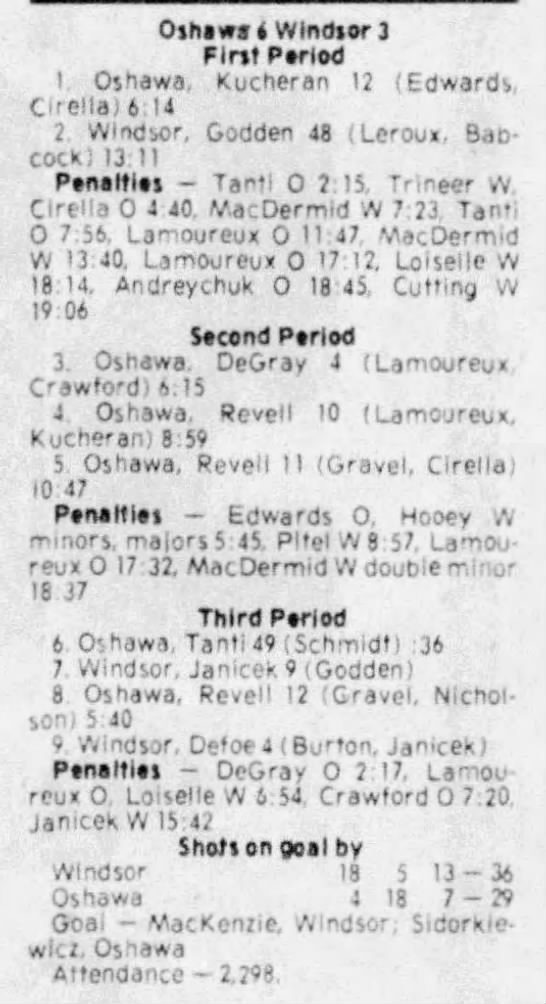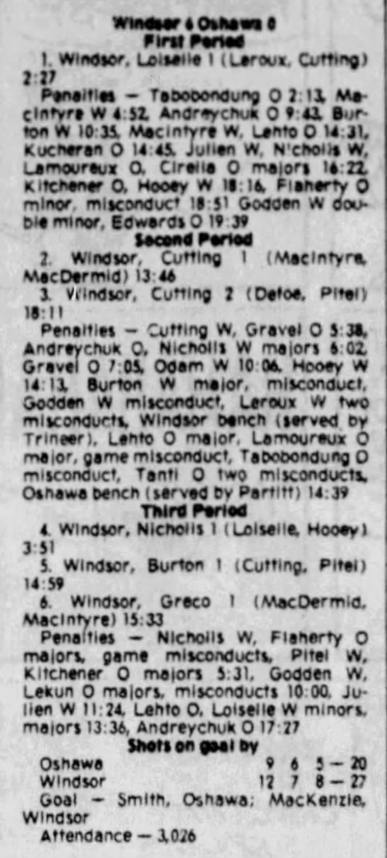 December 4 1980- Oshawa @ Windsor