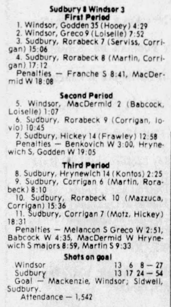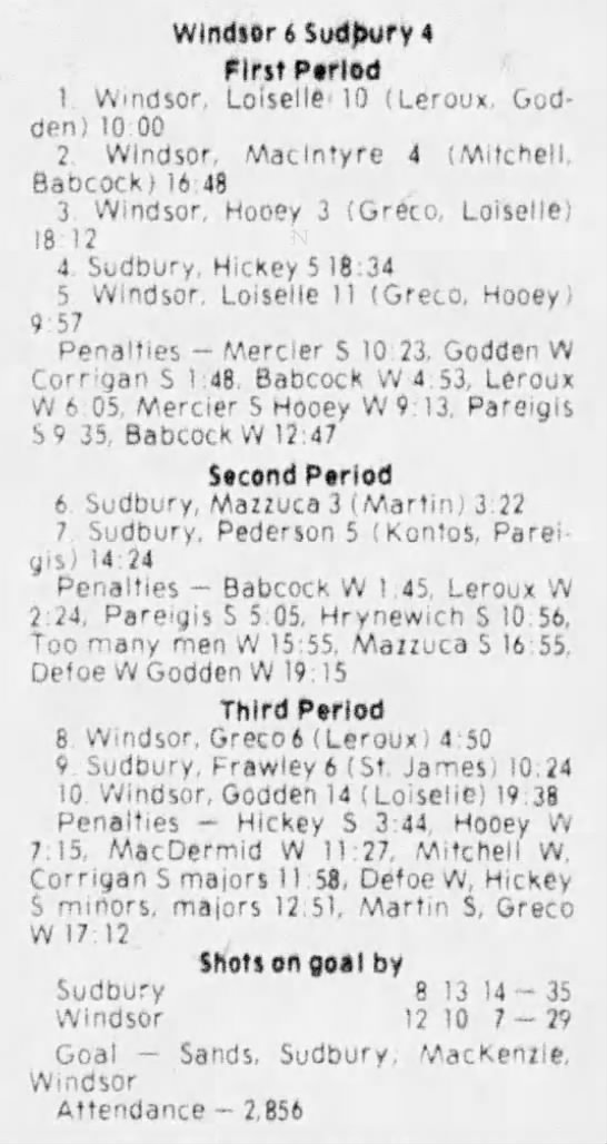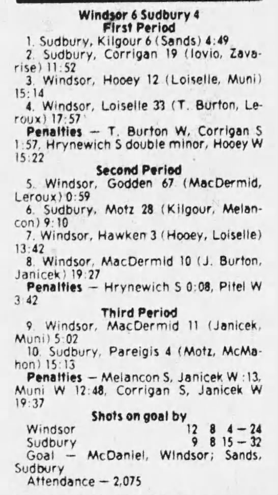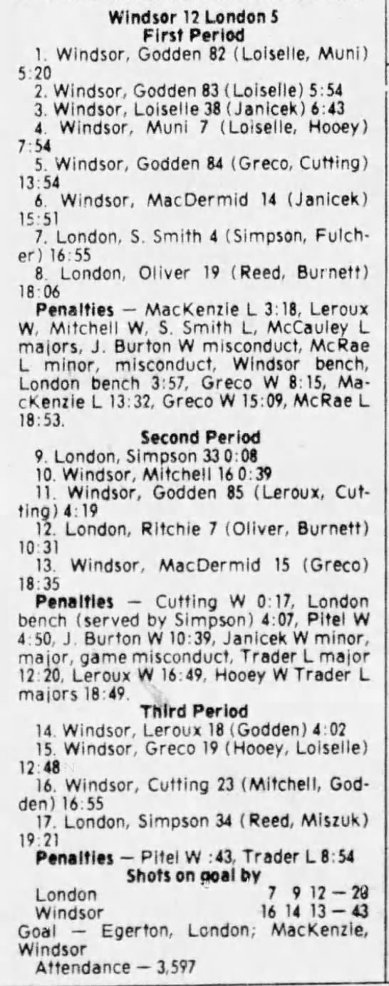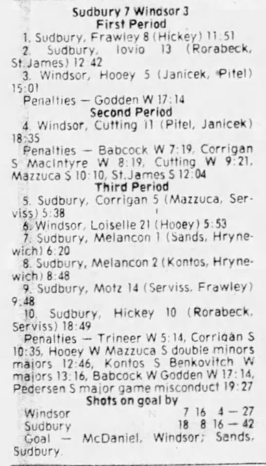 December 5 1980- Windsor @ Sudbury
