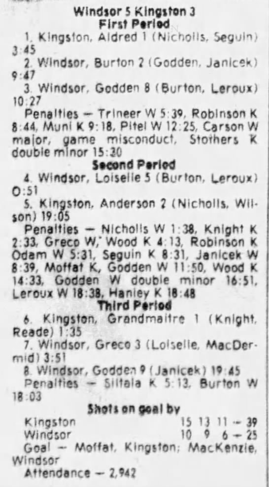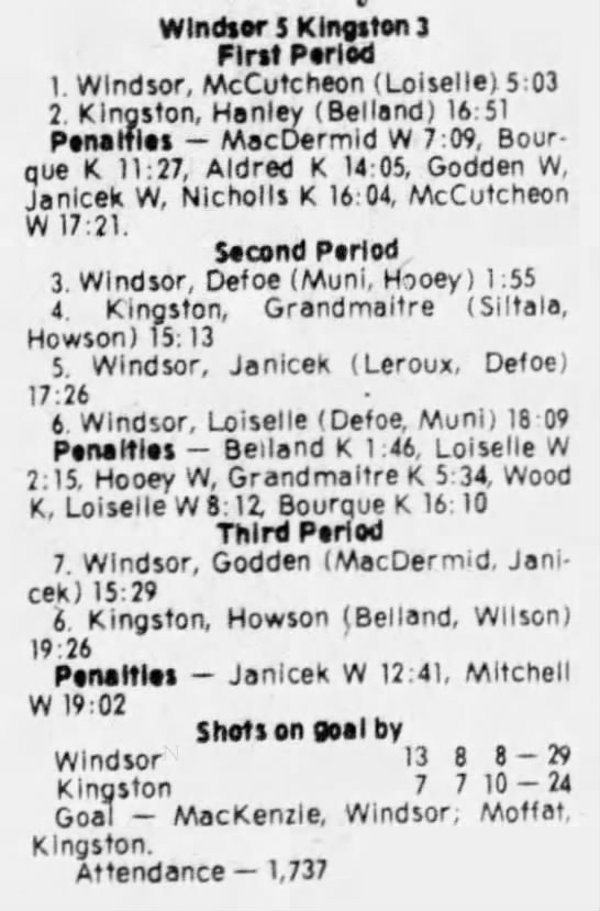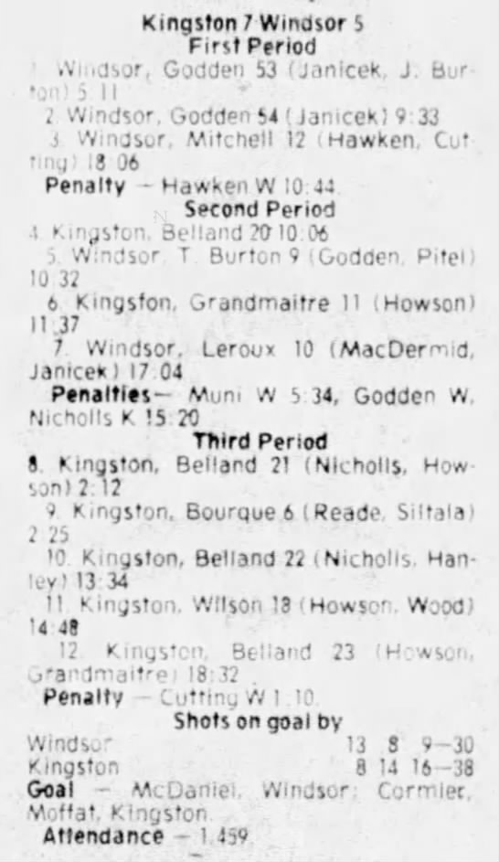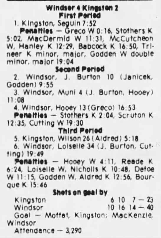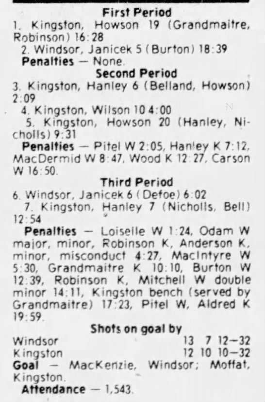 March 1 1981- Windsor @ Kingston