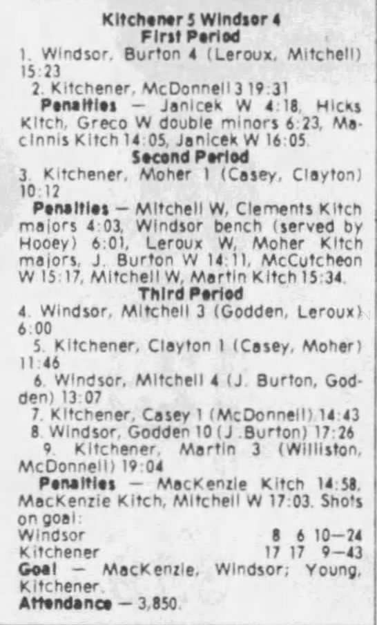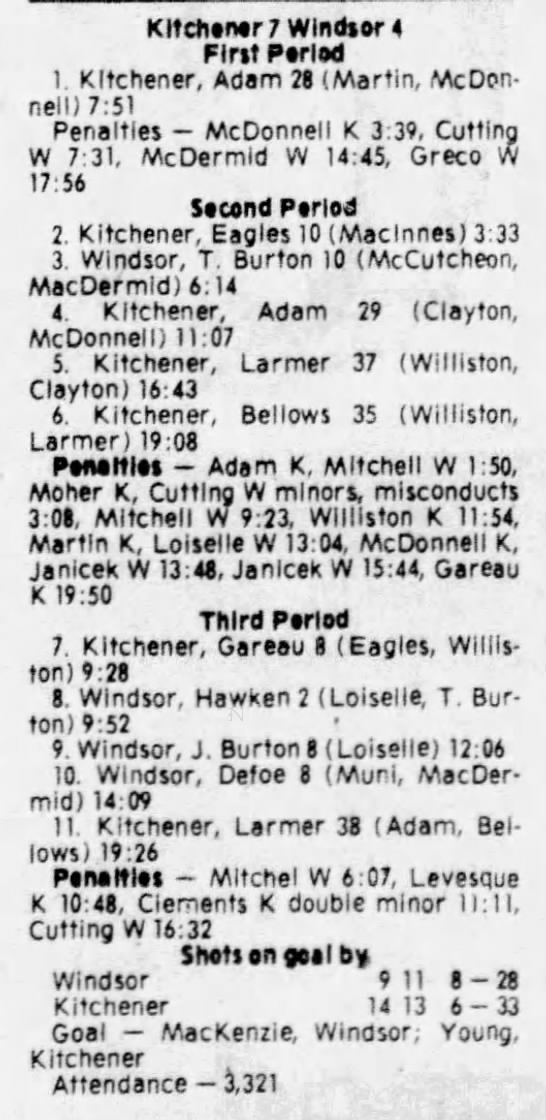Game 3- April 10 1981- Windsor @ Kitchener