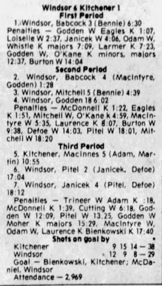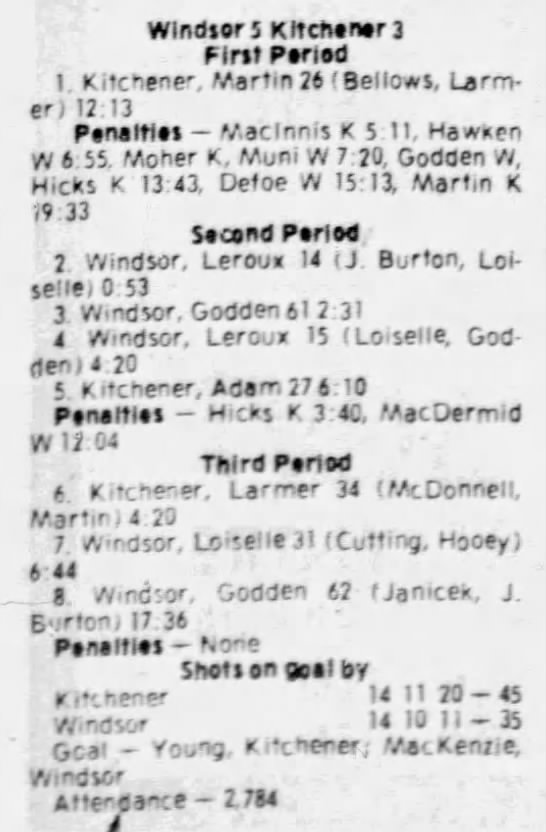 January 30 1981- Windsor @ Kitchener