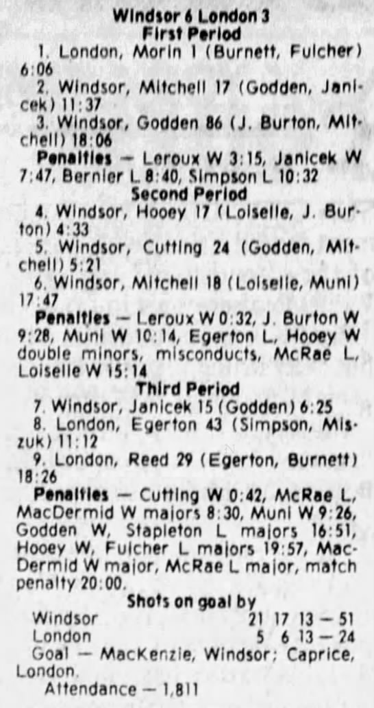 March 8 1981- Windsor @ Brantford