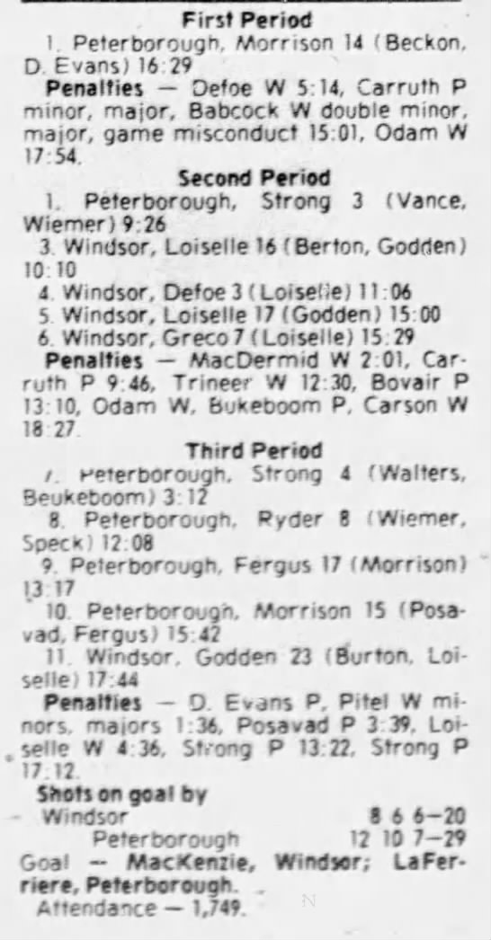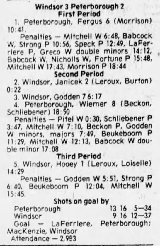 November 23 1980- Peterborough @ Windsor