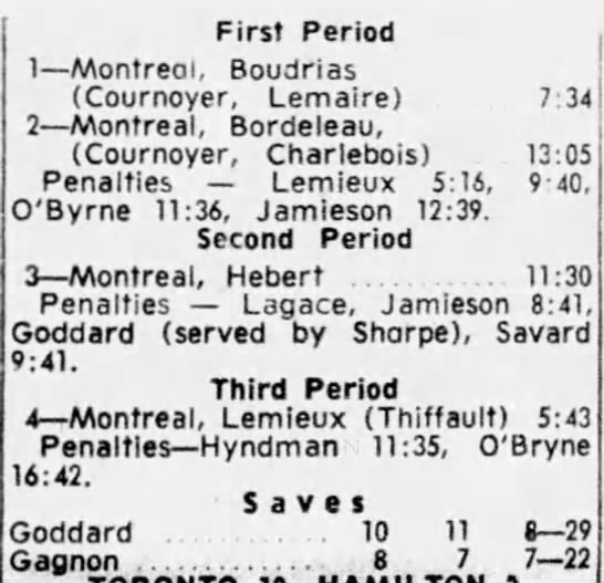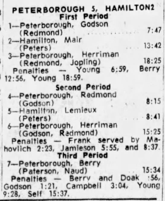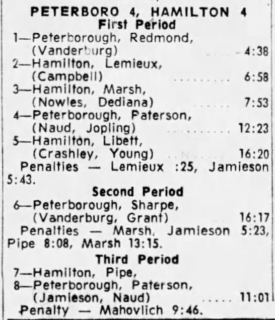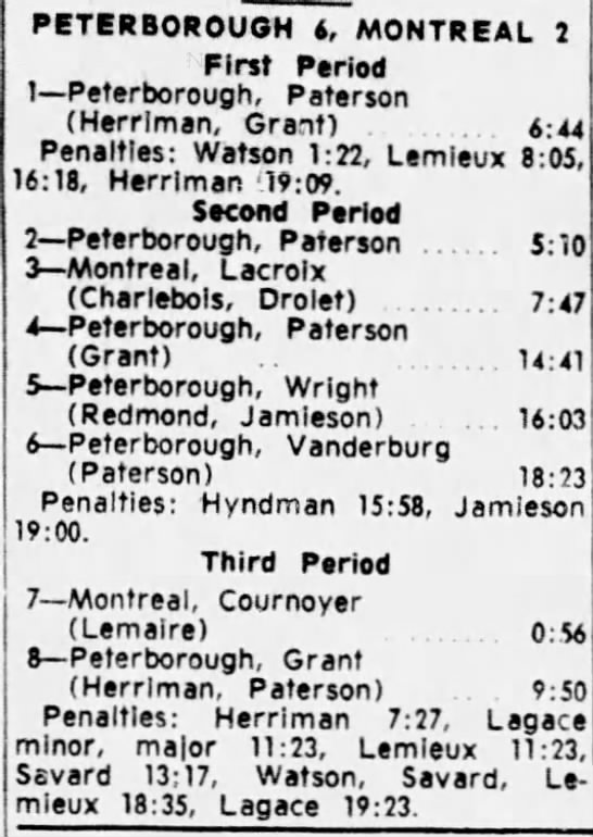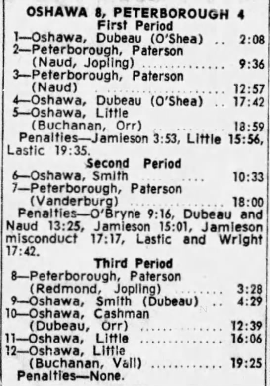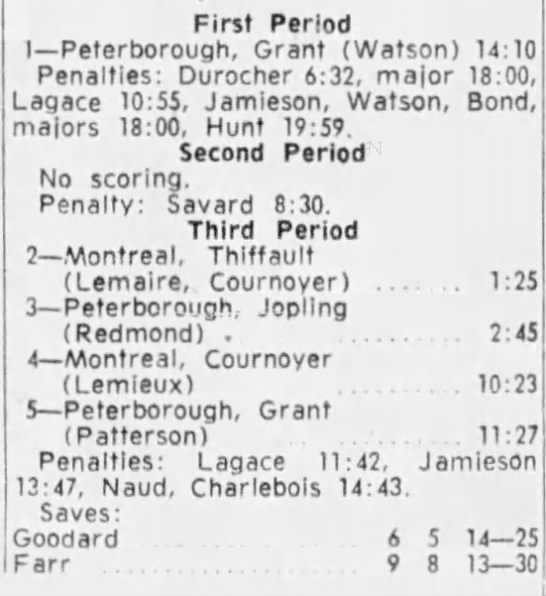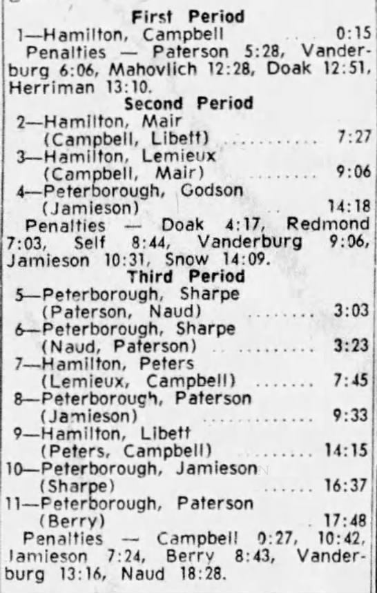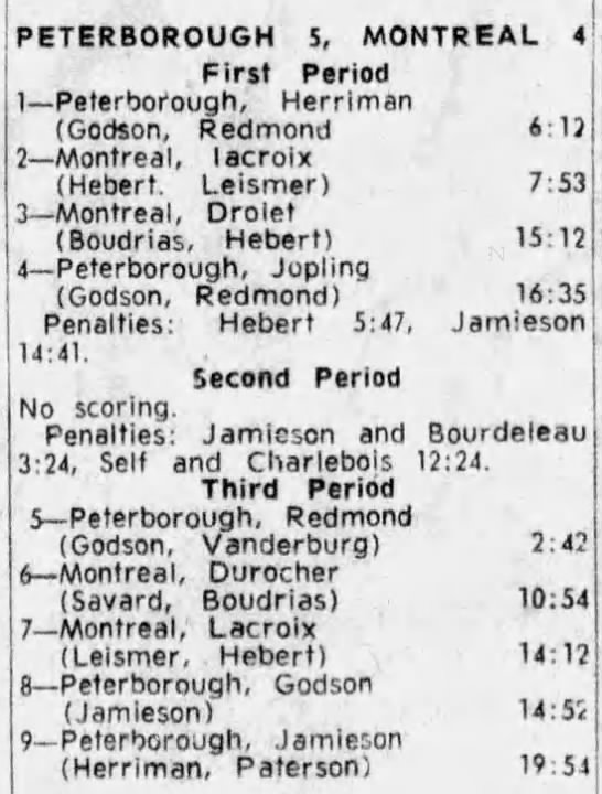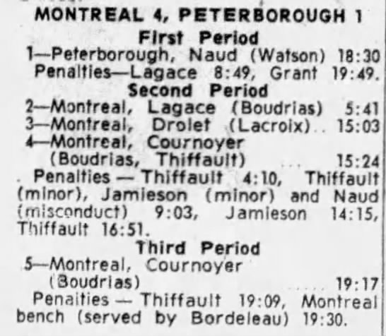 October 15 1963- Toronto @ Peterborough (7-6 Peterborough)