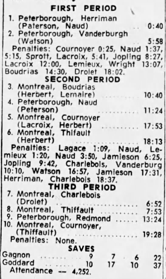 Game 2- March 12 1964- Montreal @ Peterborough