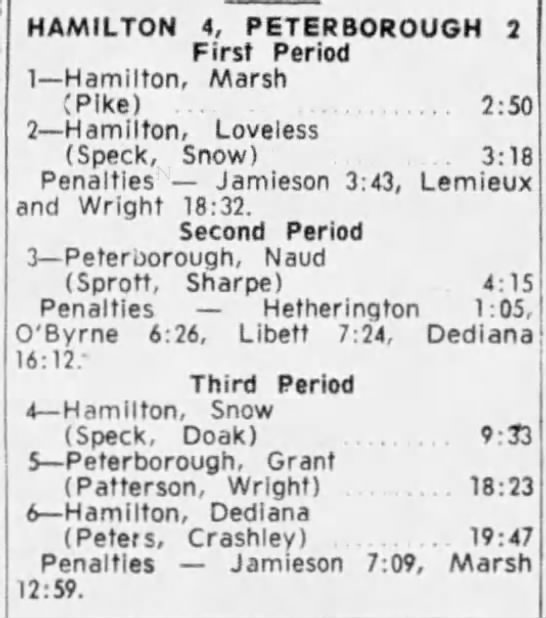 October 13 1963- Peterborough @ Hamilton (4-2 Peterborough)