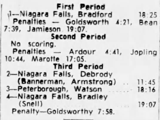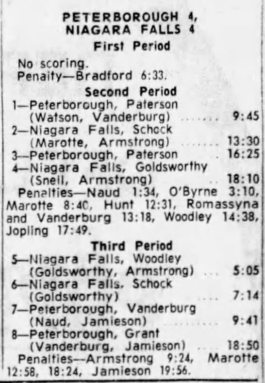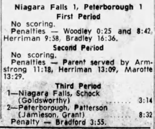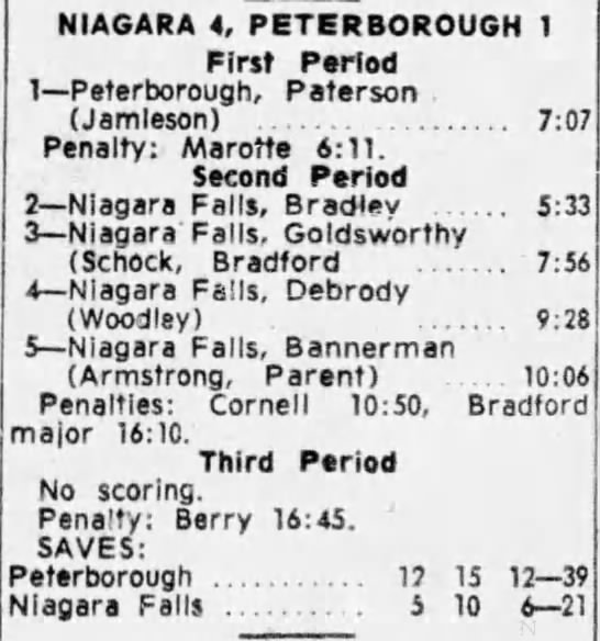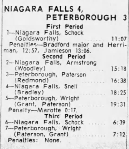 October 24 1963- Niagara Falls @ Peterborough (3-1 Peterborough)