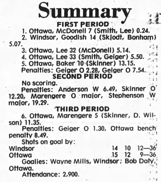 December 5 1975- Windsor @ Ottawa