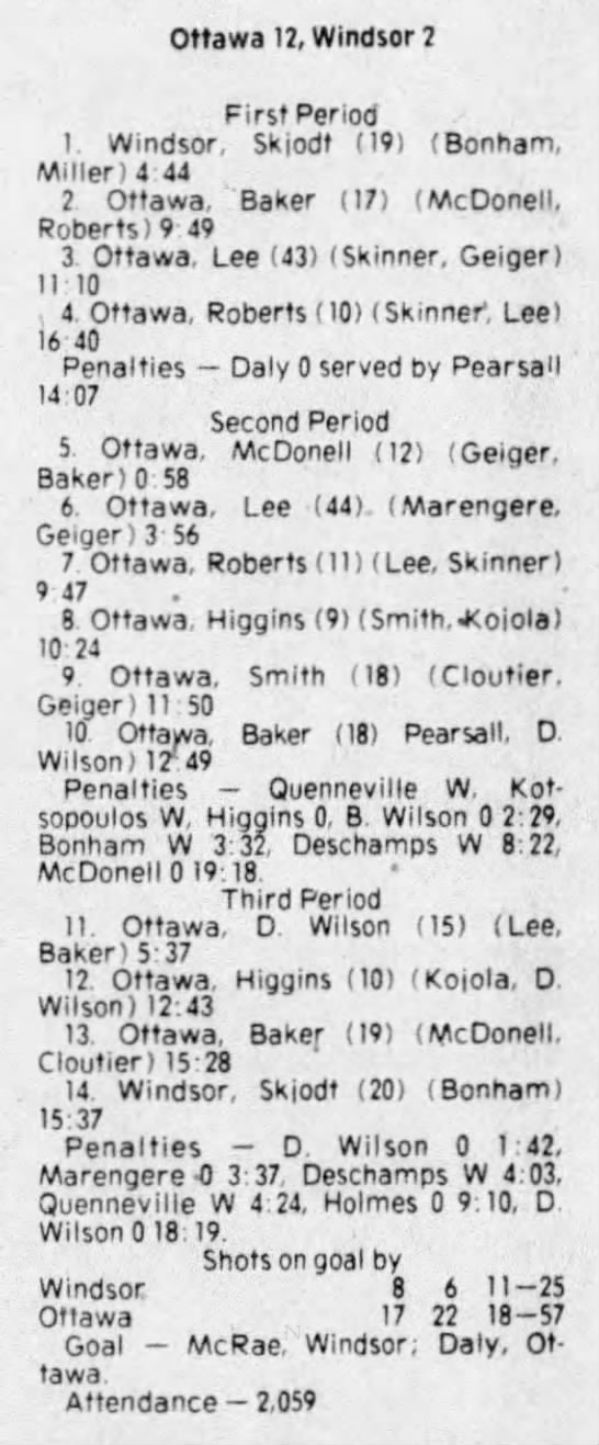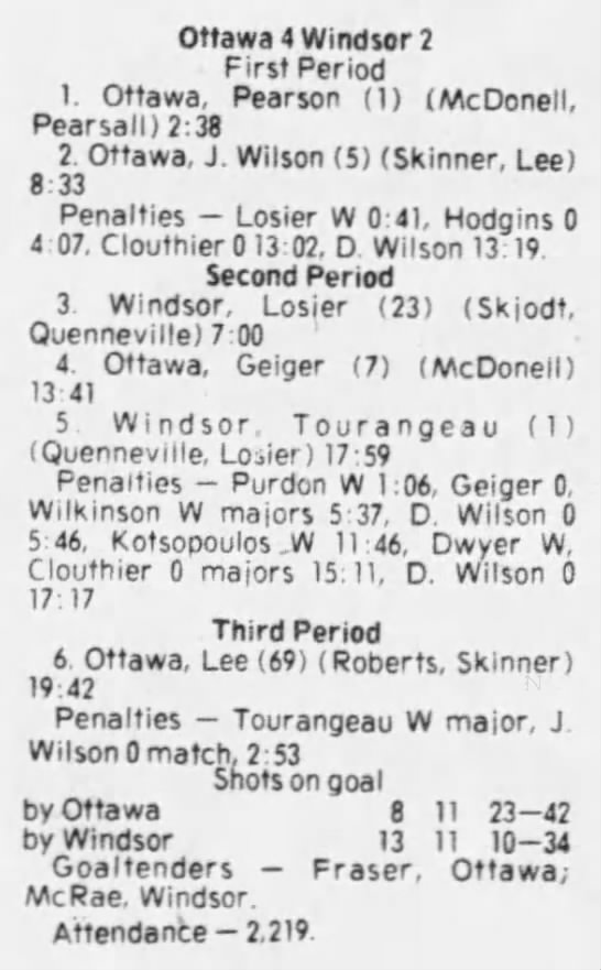March 11 1976- Ottawa @ Windsor