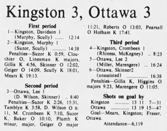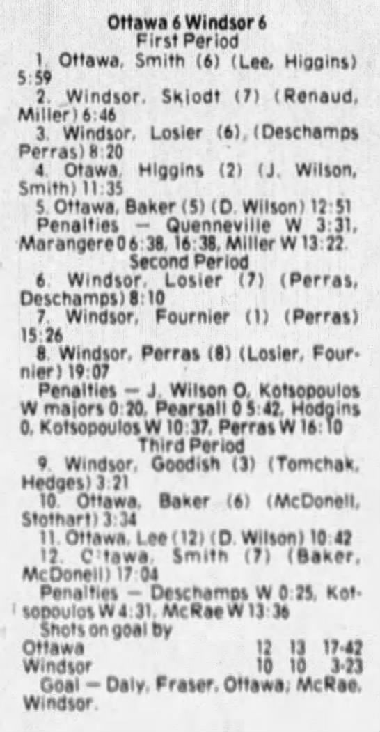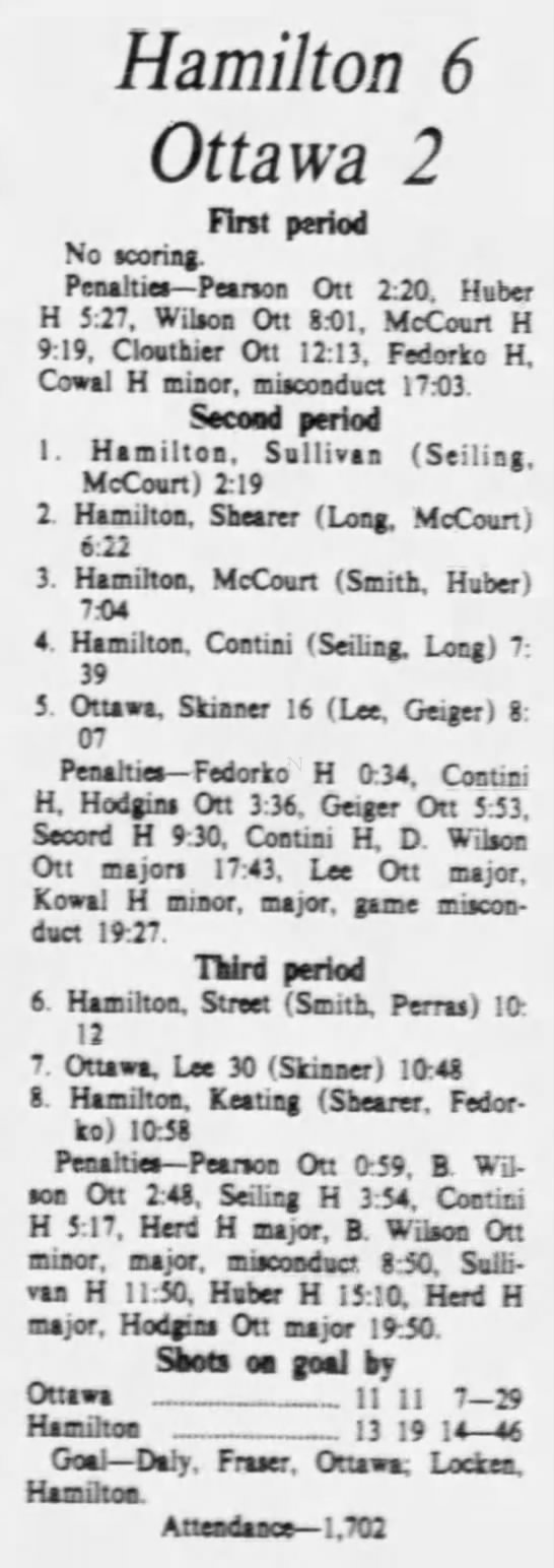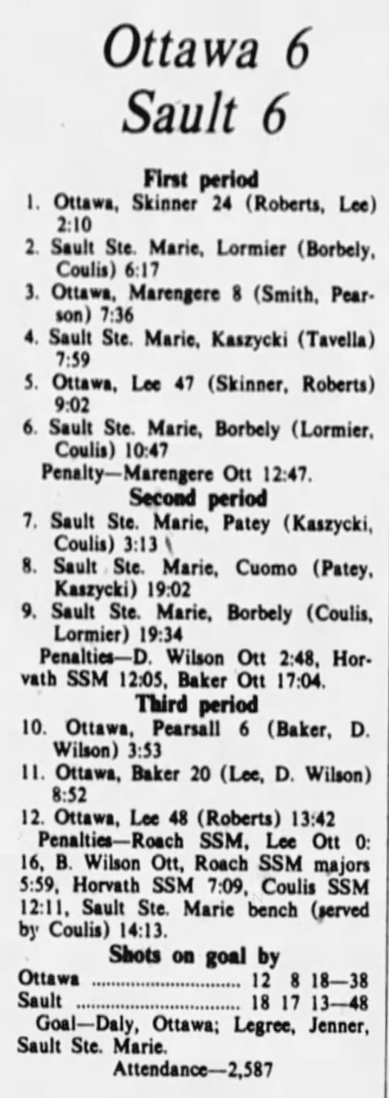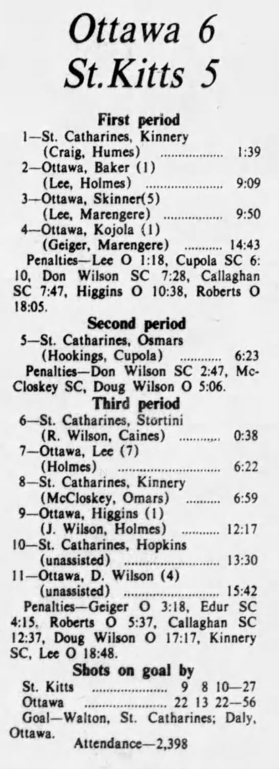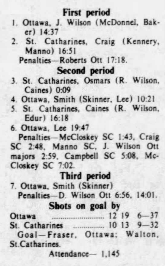 October 7 1975- Ottawa @ St. Catharines (2-2 Tie)
