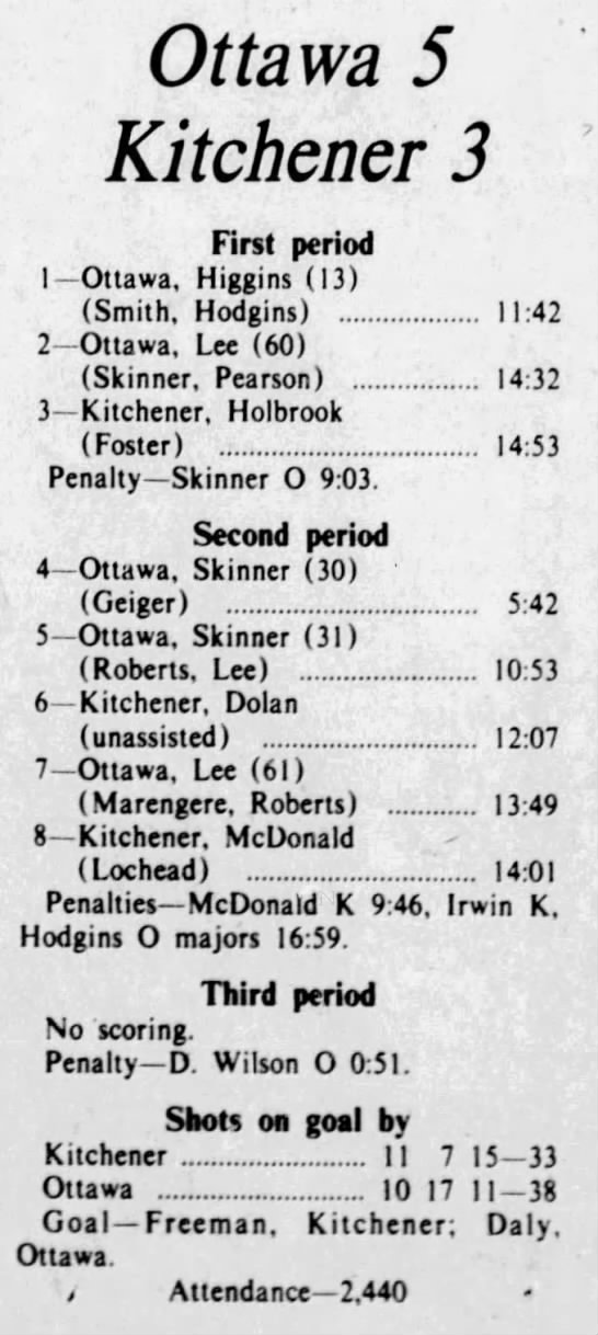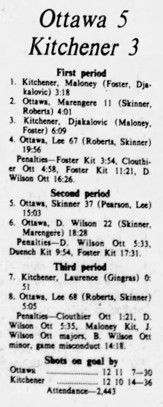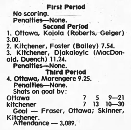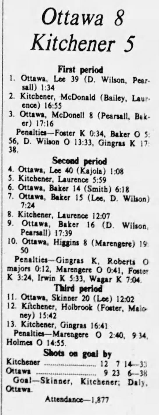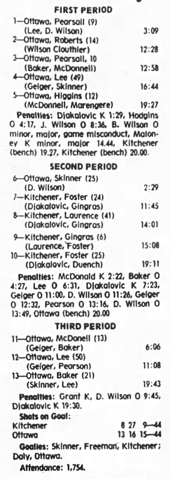 December 30 1975- Kitchener @ Ottawa