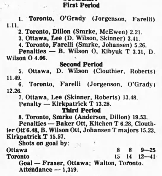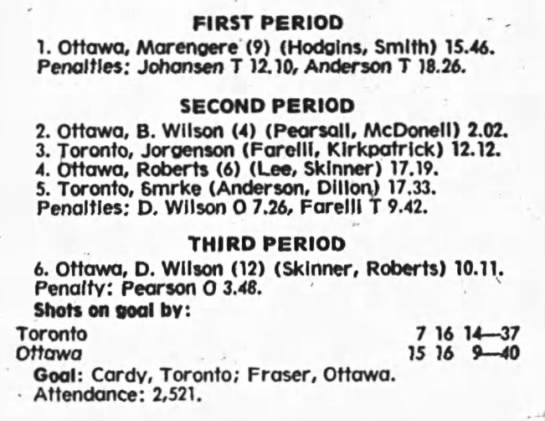 December 21 1975- Ottawa @ Toronto (6-3 Toronto)