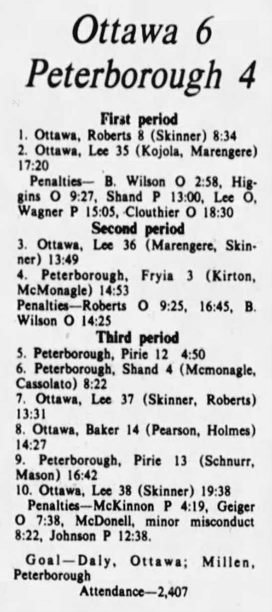 November 21 1975- Peterborough @ Ottawa