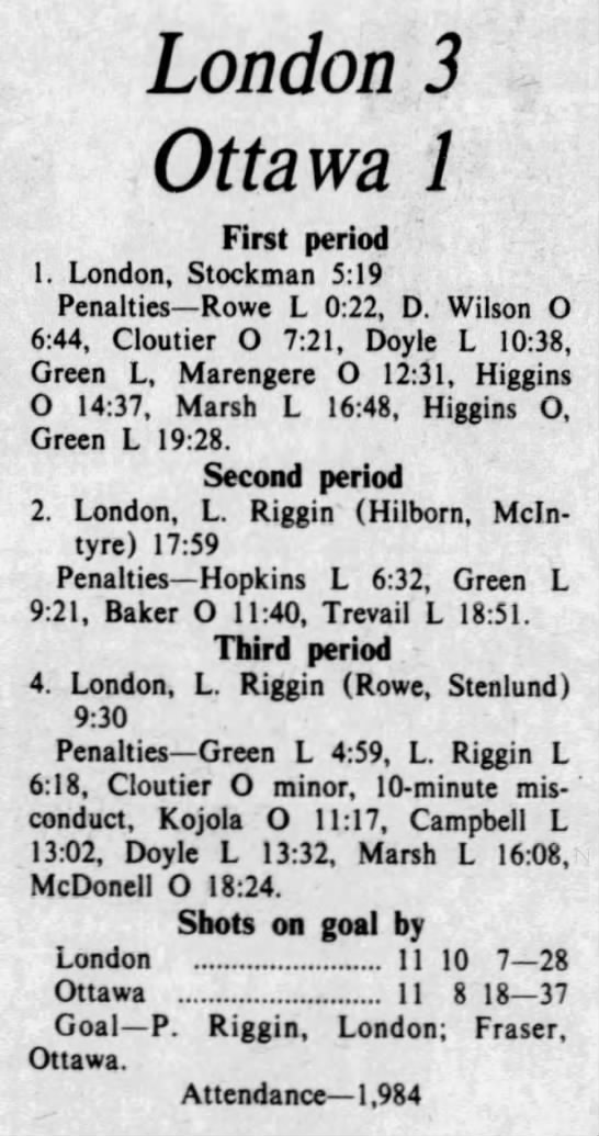 January 16 1976- London @ Ottawa