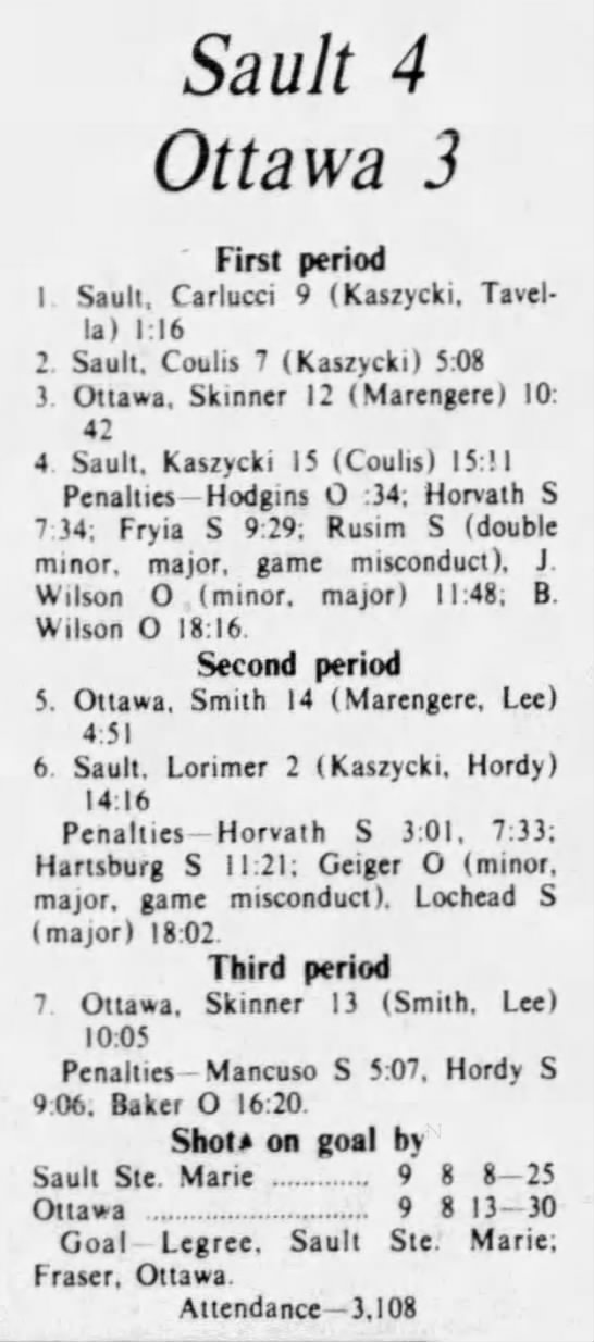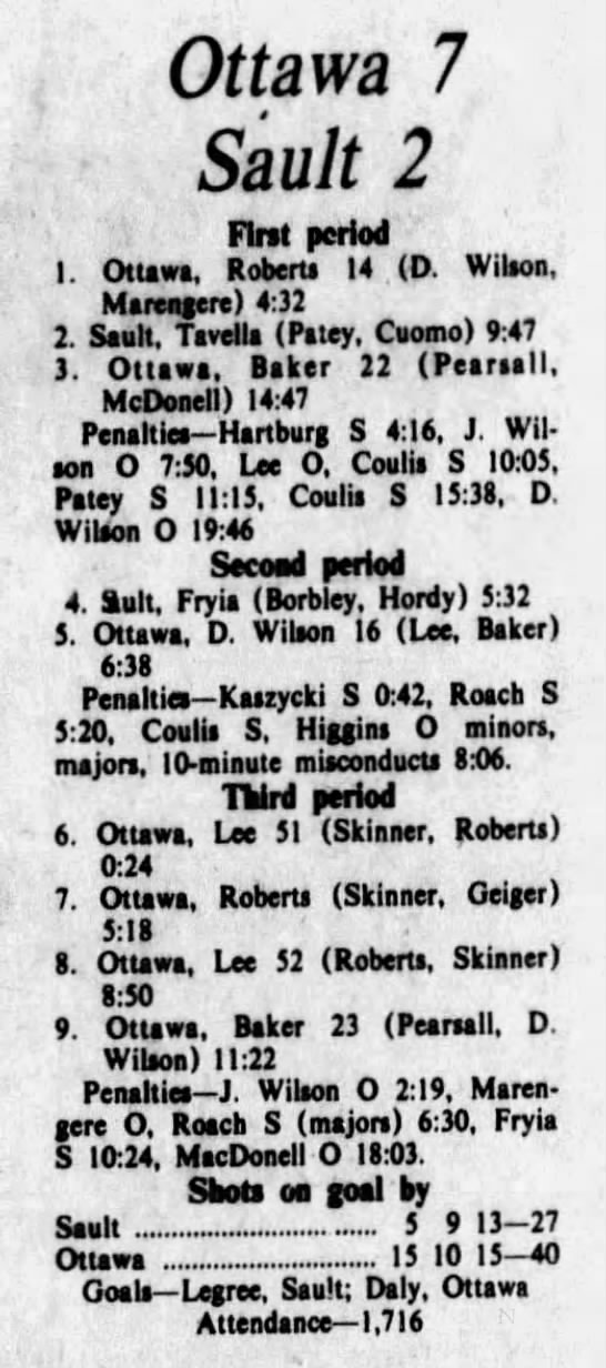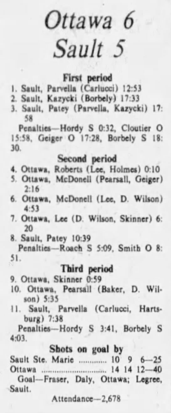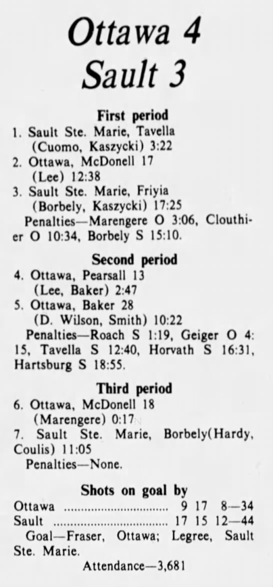 October 18 1975- Ottawa @ Soo (9-6 Soo)