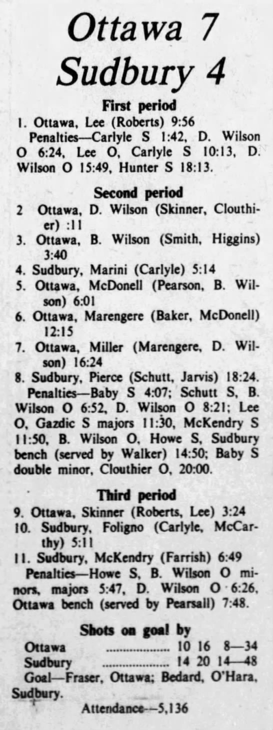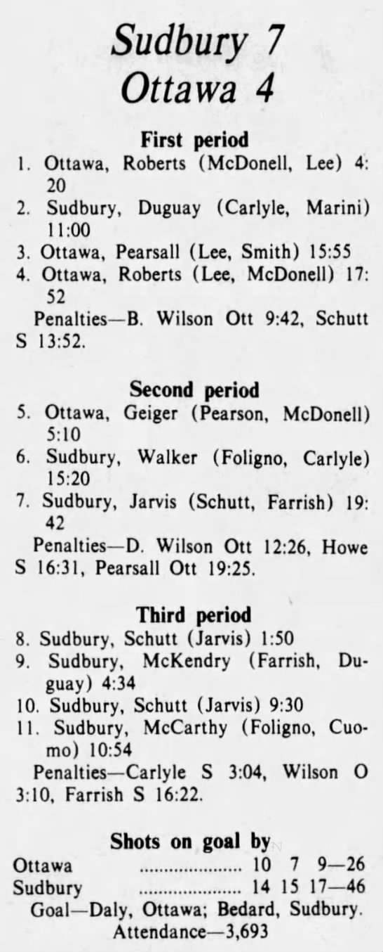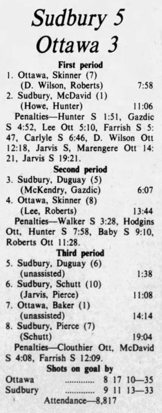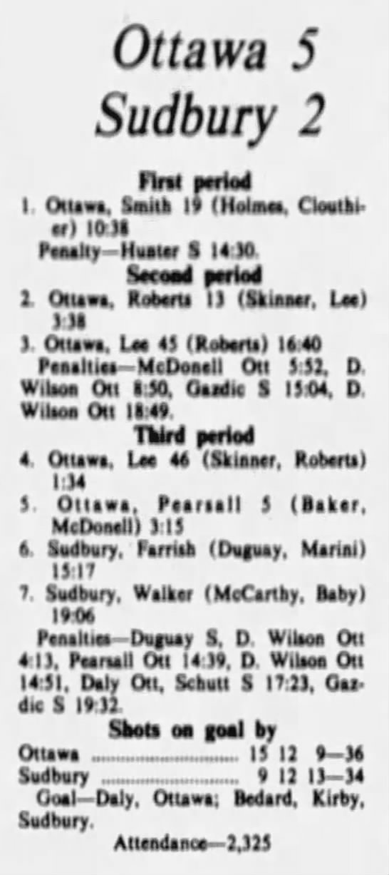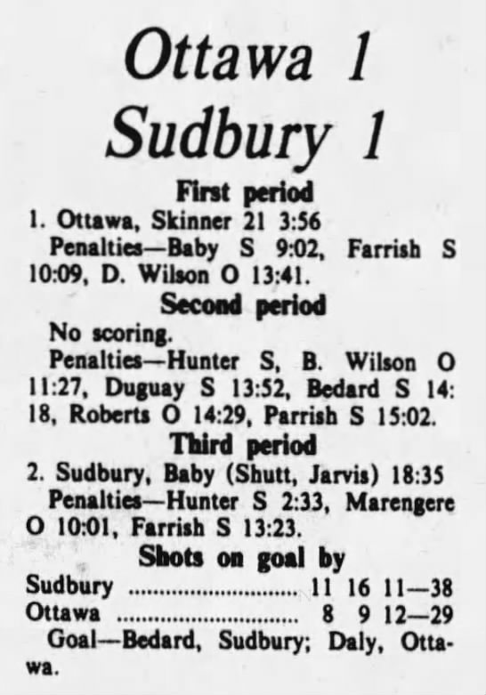 October 19 1975- Ottawa @ Sudbury (8-4 Sudbury)