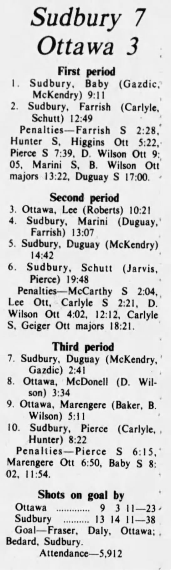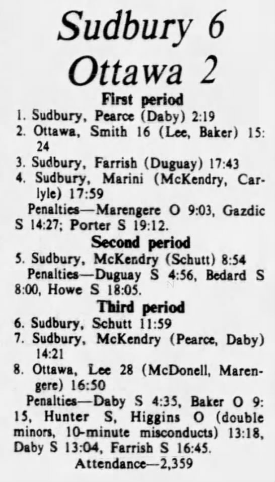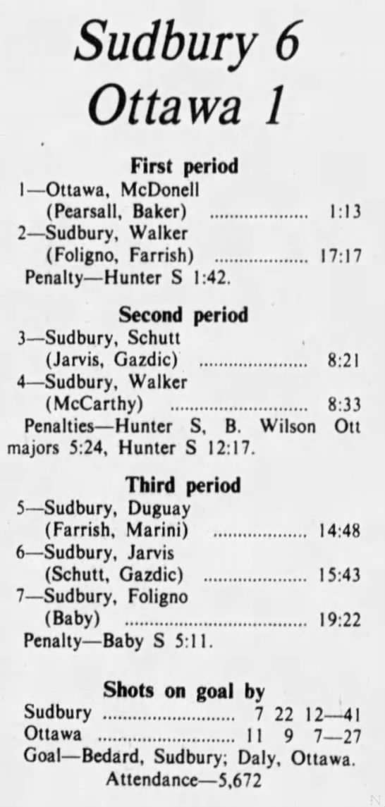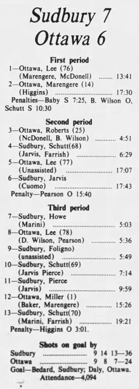October 19 1975- Ottawa @ Sudbury (8-4 Sudbury)