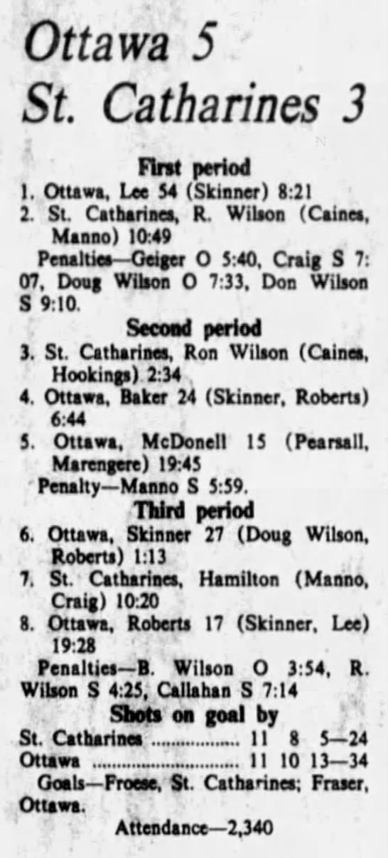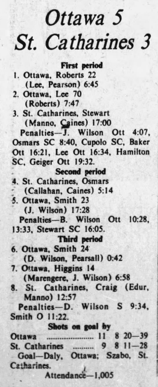 November 2 1975- Ottawa @ St. Catharines