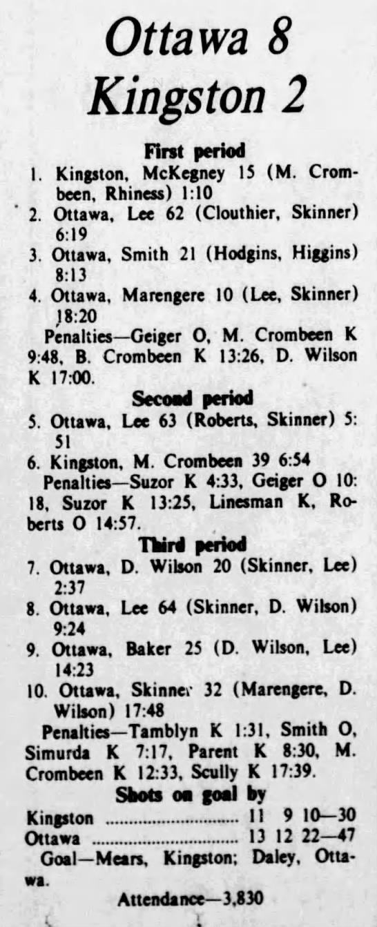 March 2 1976- Ottawa @ Kingston