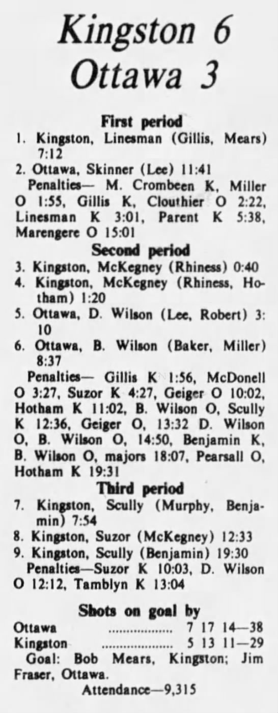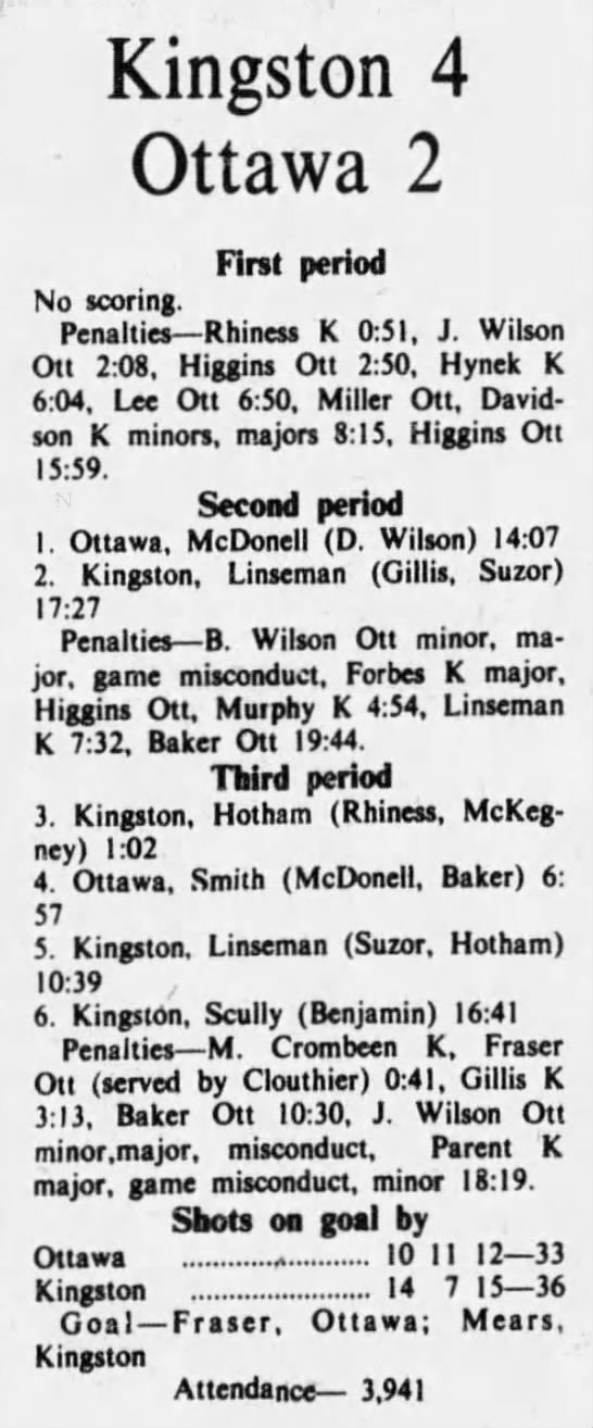 Game 2- March 23 1976- Kingston @ Ottawa
