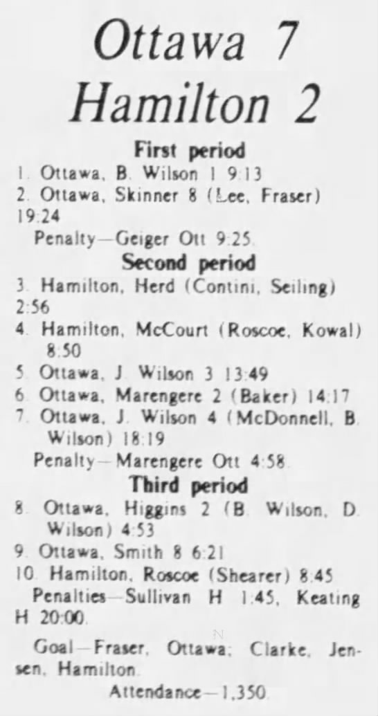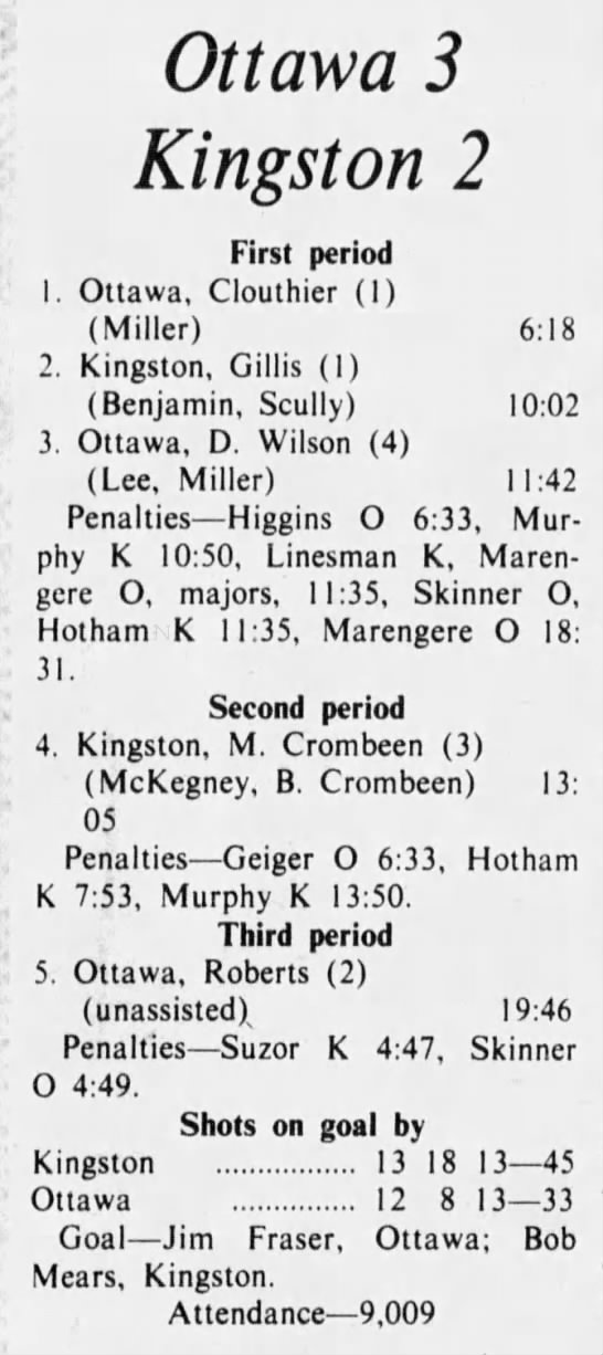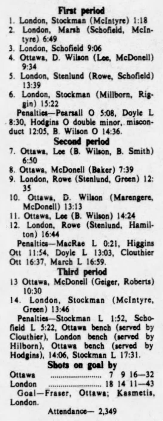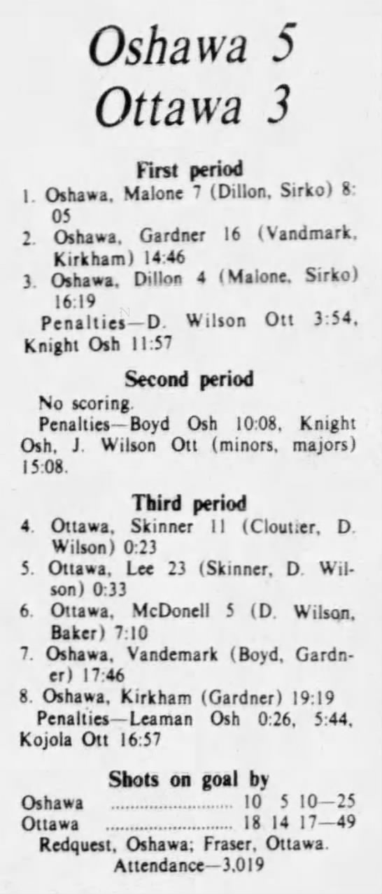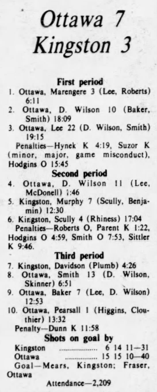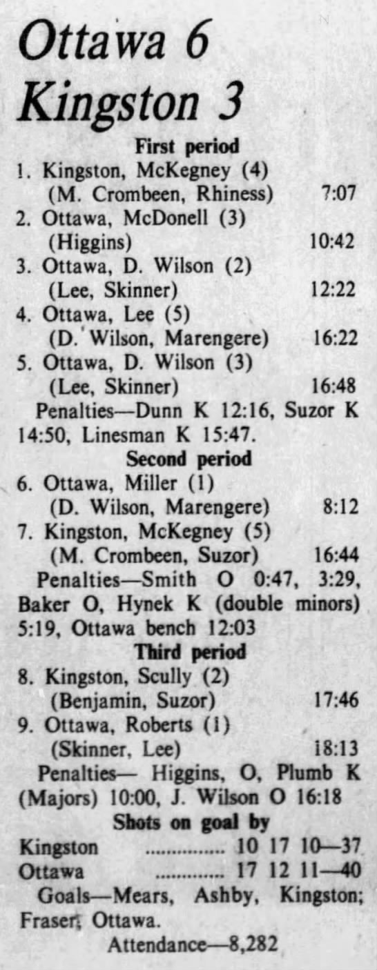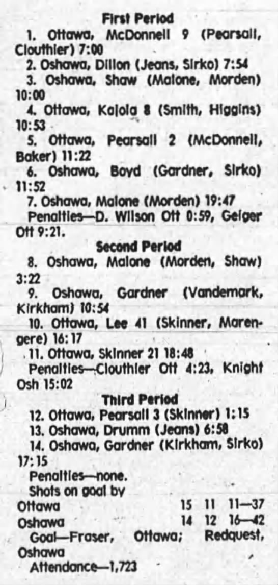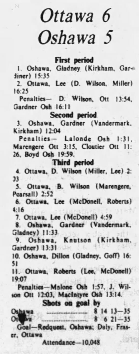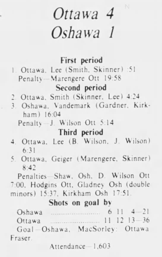 October 13 1975- Ottawa @ Oshawa (5-3 Ottawa)