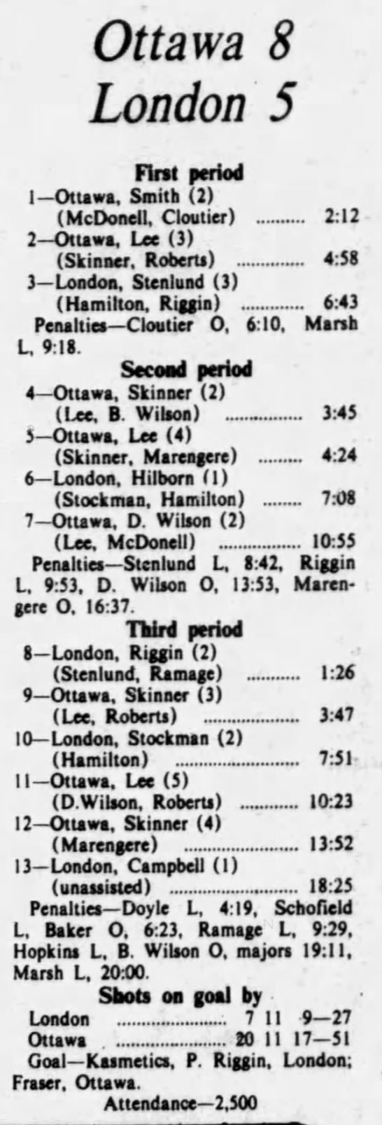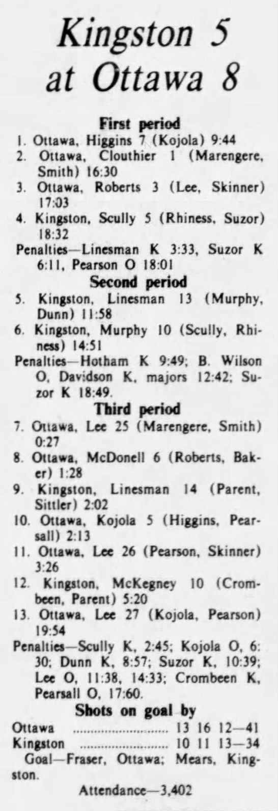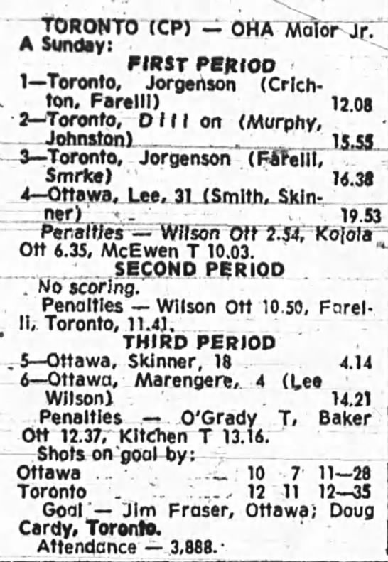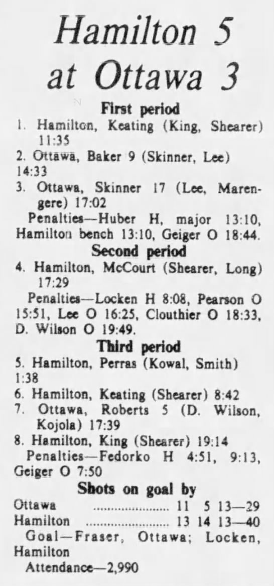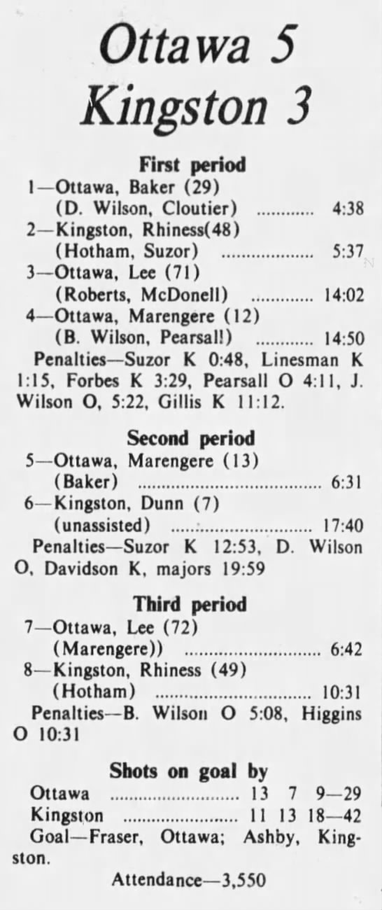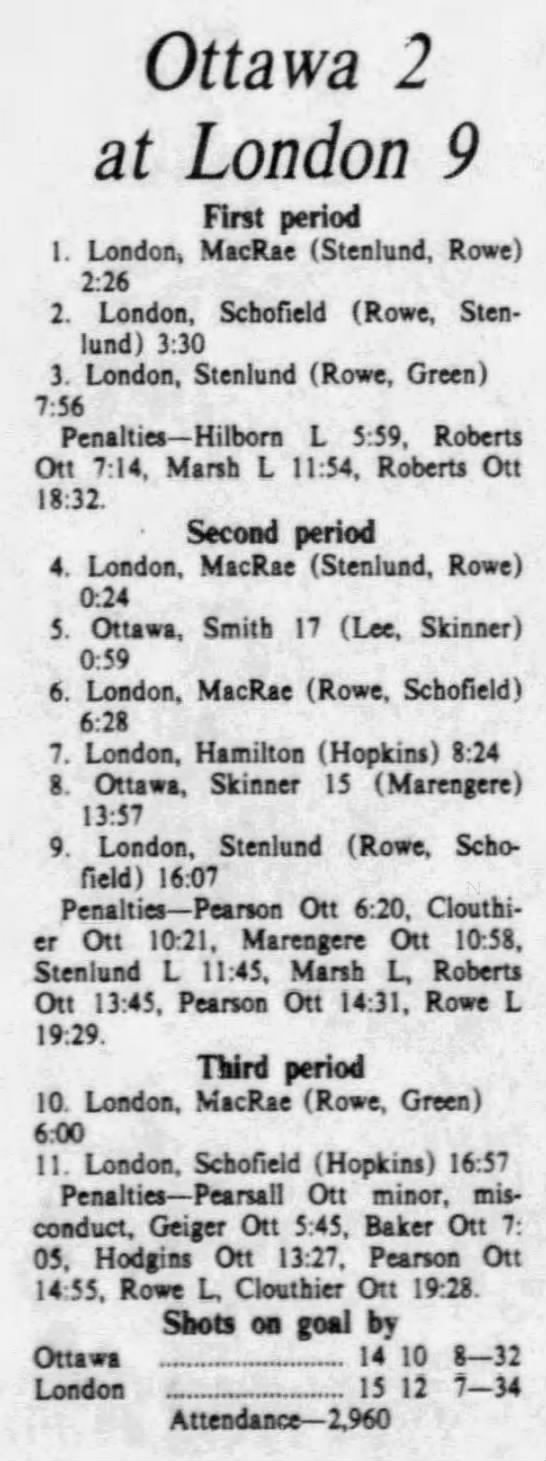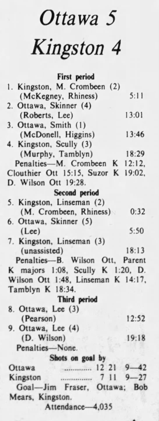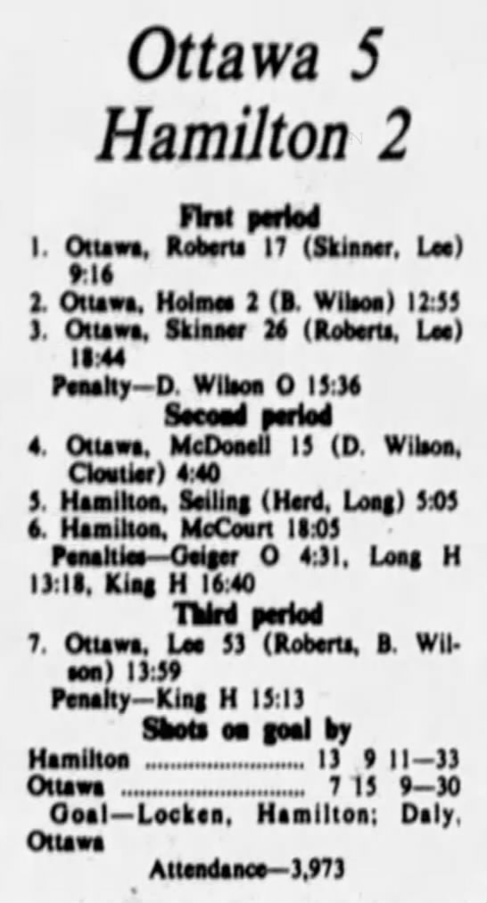 October 13 1975- Ottawa @ Oshawa (5-3 Ottawa)