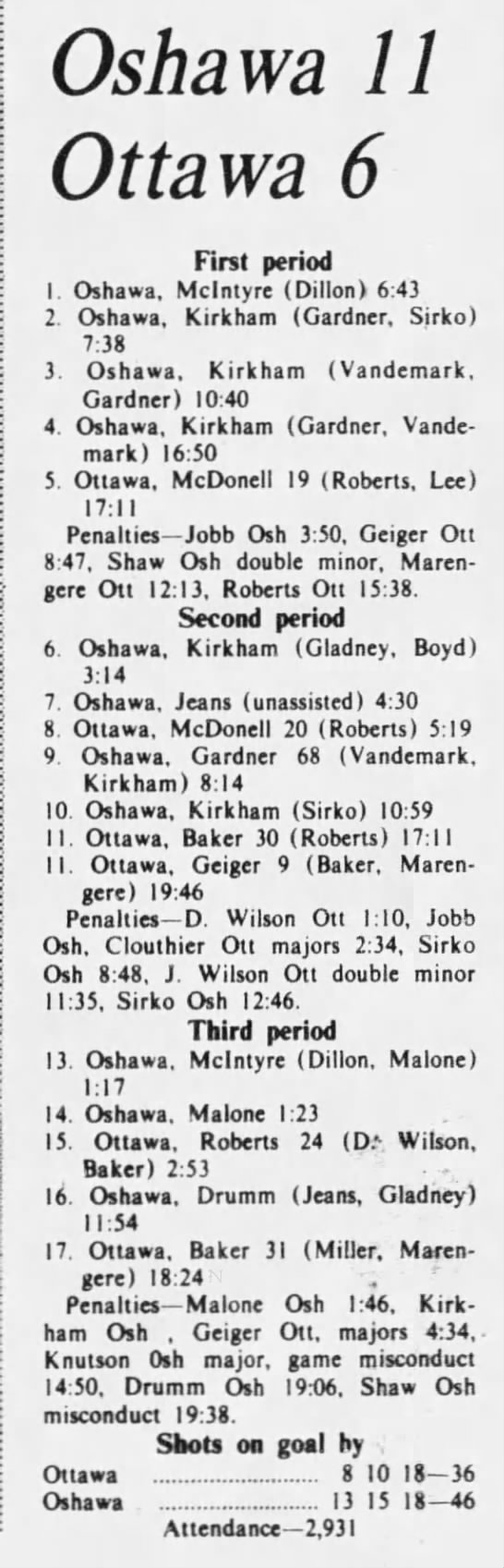 November 7 1975- Oshawa @ Ottawa