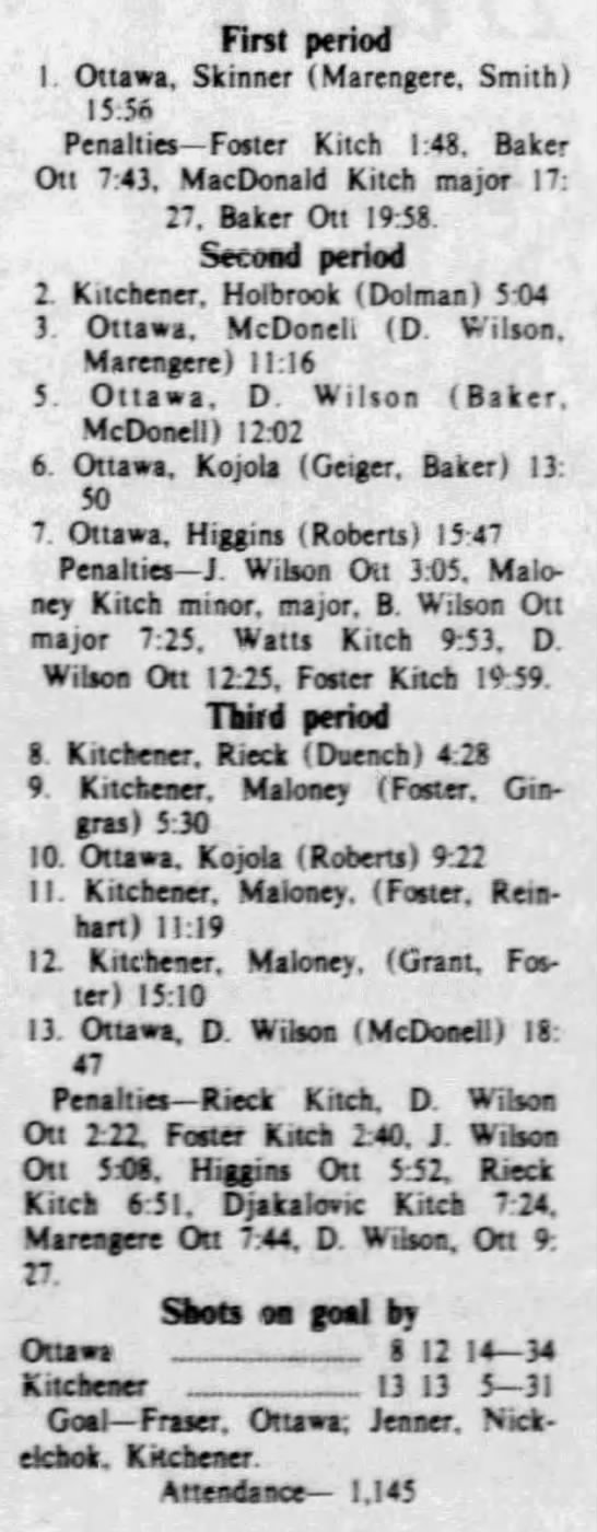 January 18 1976- Kitchener @ Ottawa
