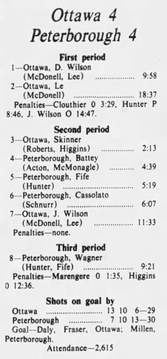 November 13 1975- Ottawa @ Peterborough (3-3 Tie)