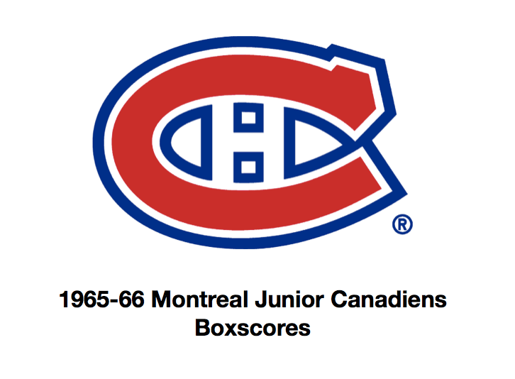 Here are the boxscores from the 1965-66 Montreal Junior Canadiens season. Every boxscore from that season is here (58/58 boxscores). If you have any of the games that are missing, please send them my way.