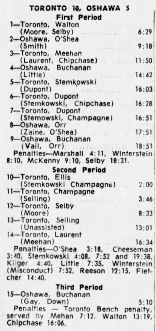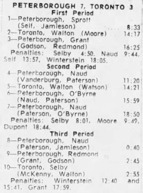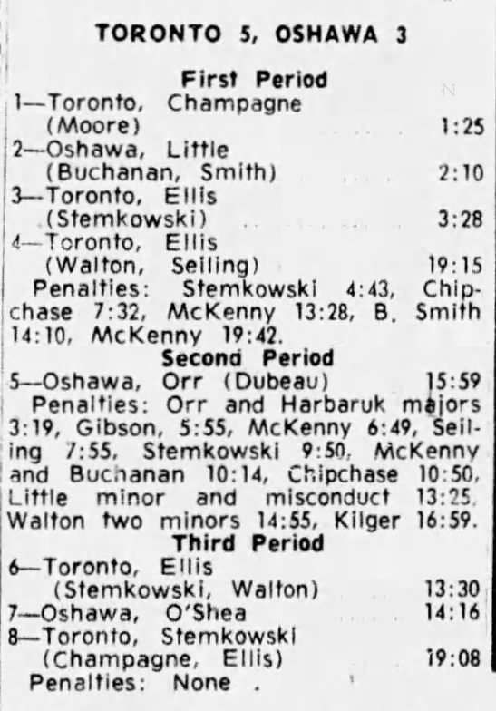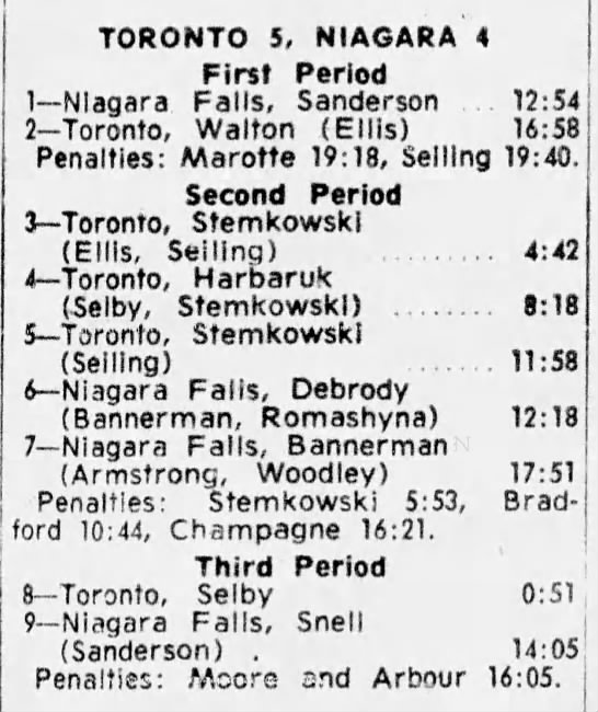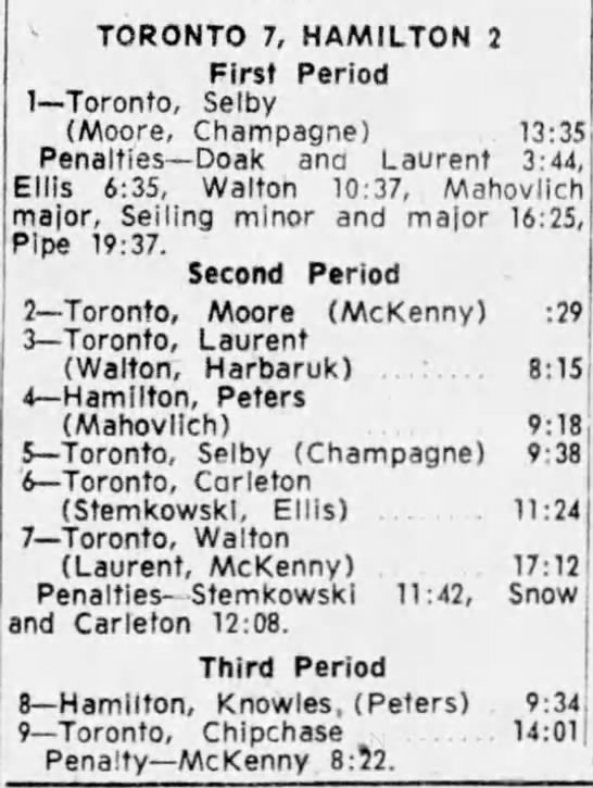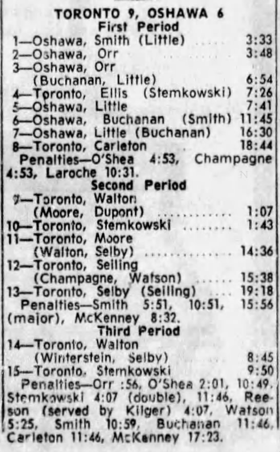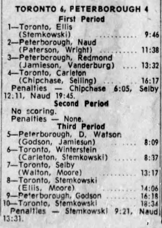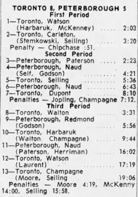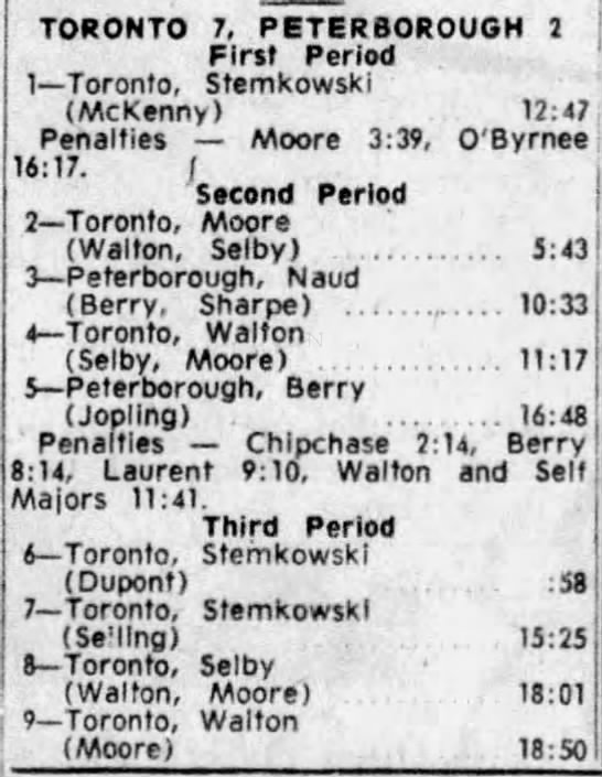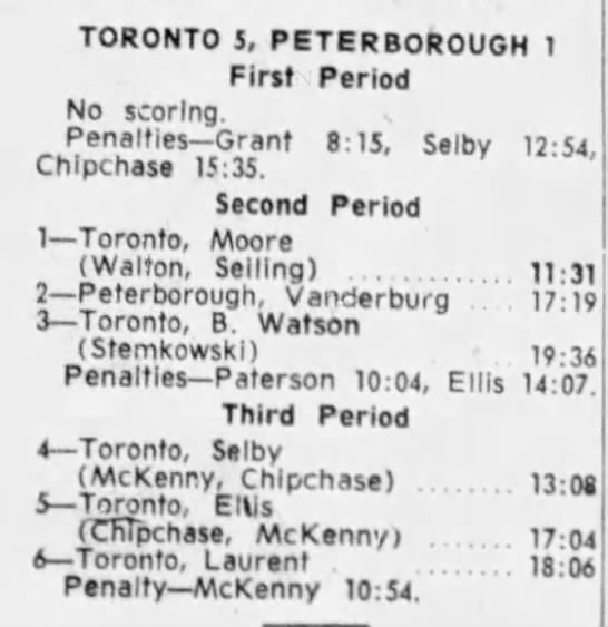 October 15 1963- Toronto @ Peterborough (7-6 Peterborough)