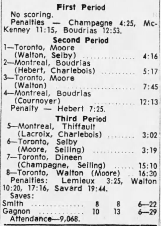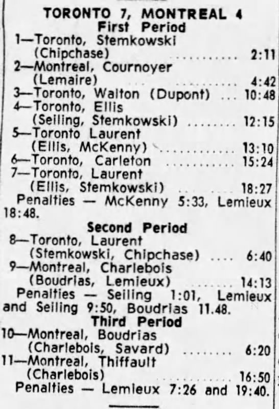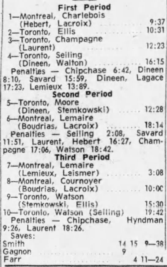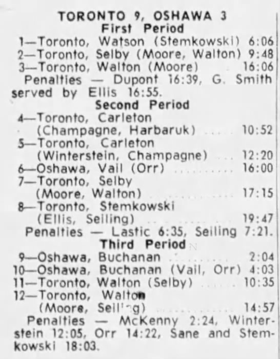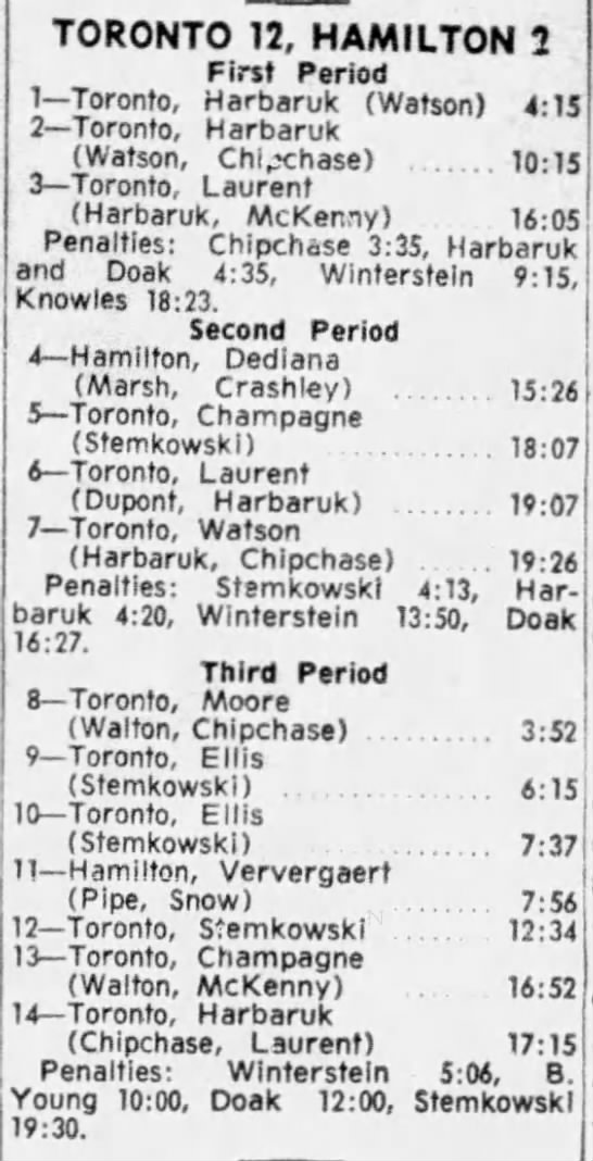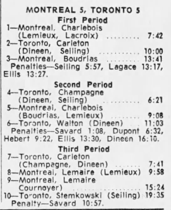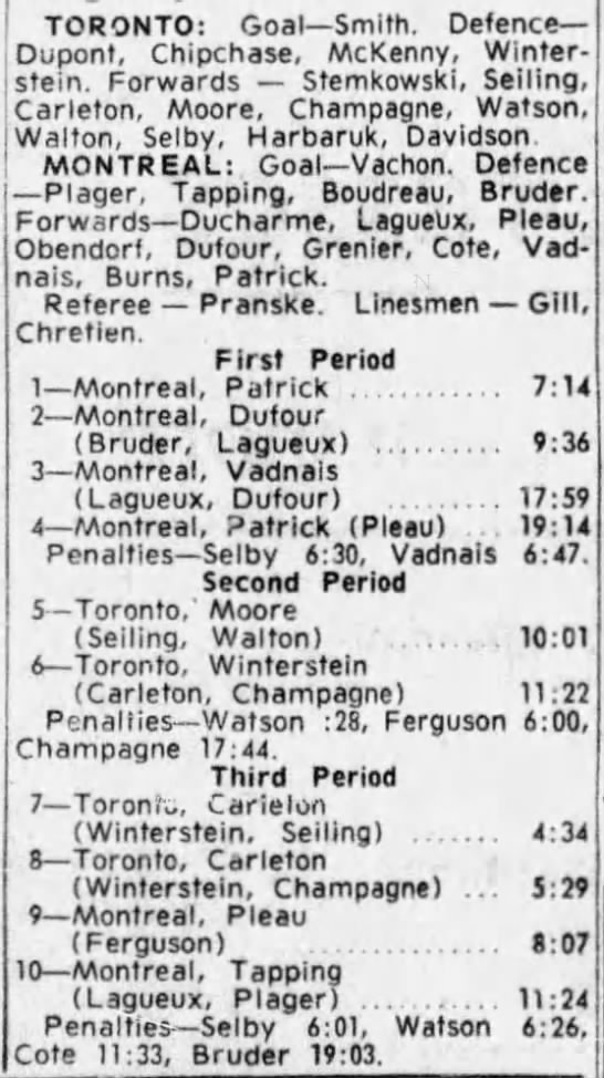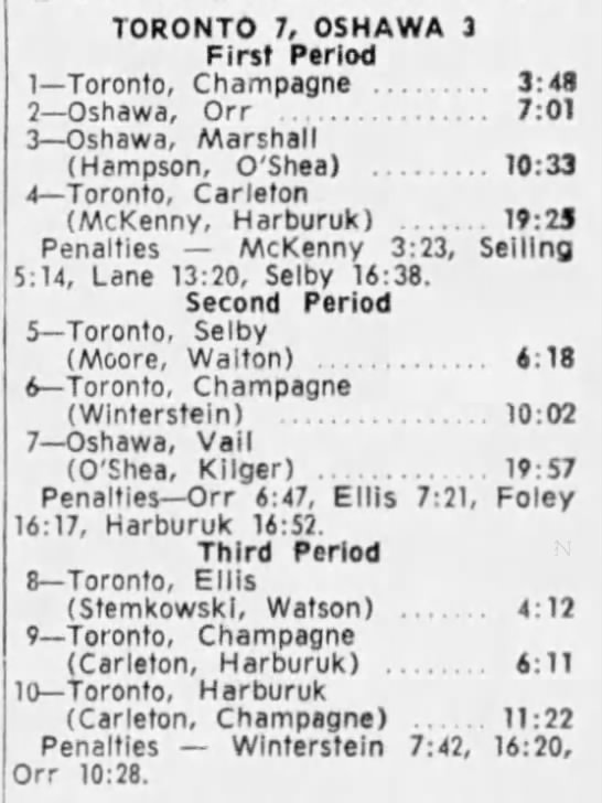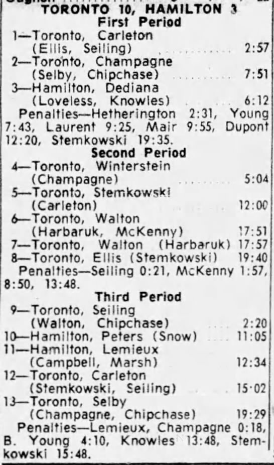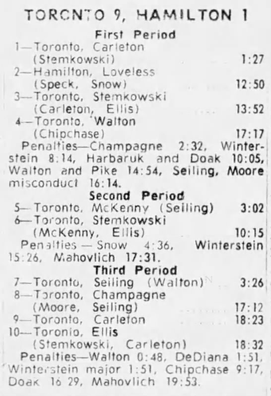 October 15 1963- Toronto @ Peterborough (7-6 Peterborough)