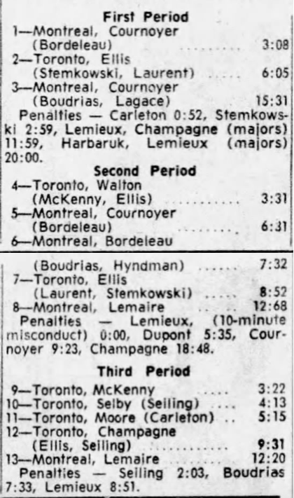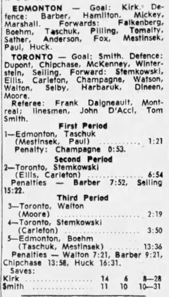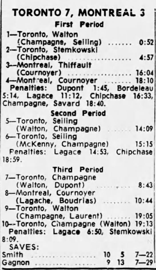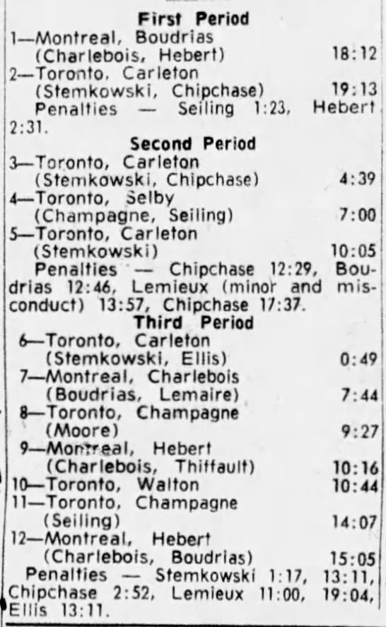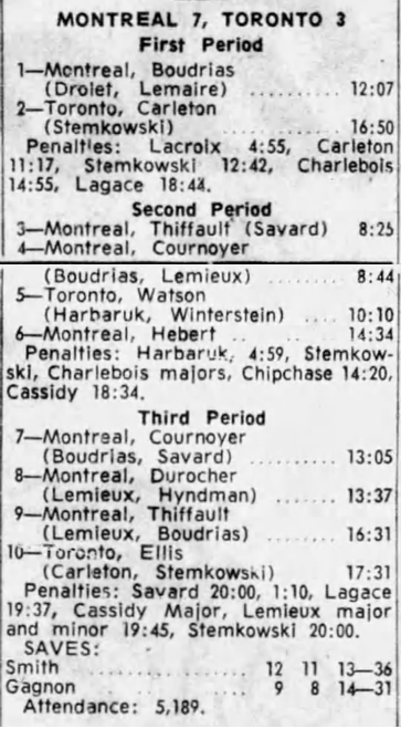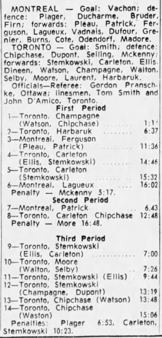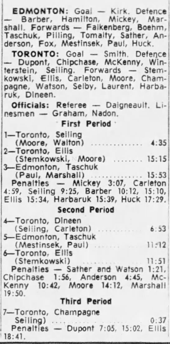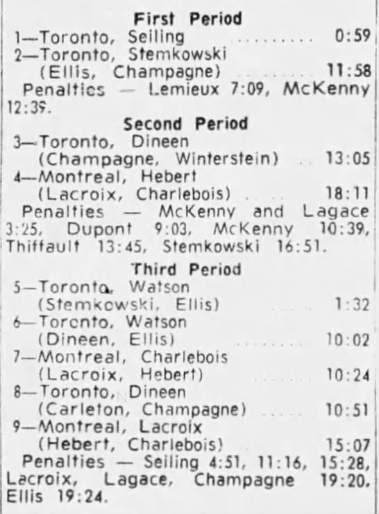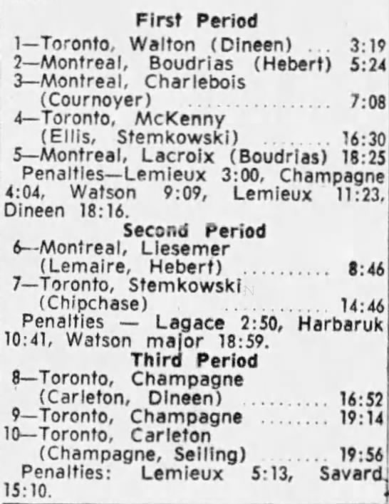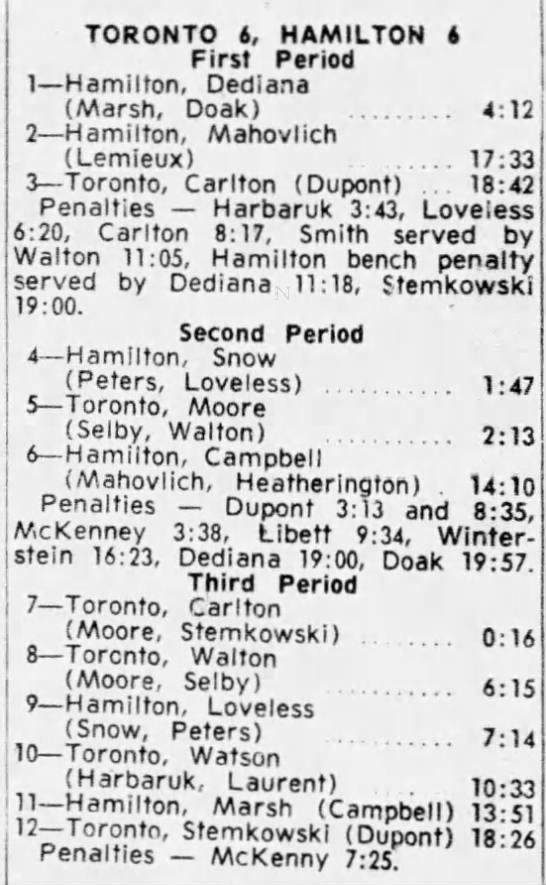 October 15 1963- Toronto @ Peterborough (7-6 Peterborough)