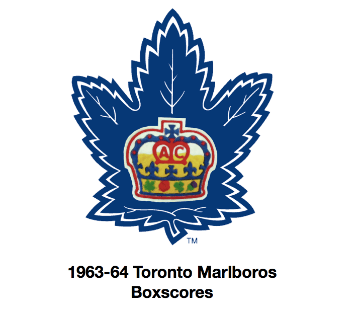 Here are the boxscores from the 1963-64 Toronto Marlboros Memorial Cup championship season. There are some that are missing, but most are here (68/77 boxscores). If you have any of the games that are missing, please send them my way.